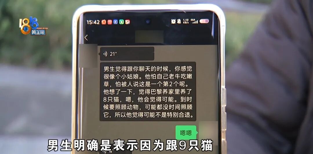 杭州邂逅信息技术服务有限公司工作人员:因为她跟男生说,她是跟几只猫睡在一张床上,所以男生觉得这个有点夸张。