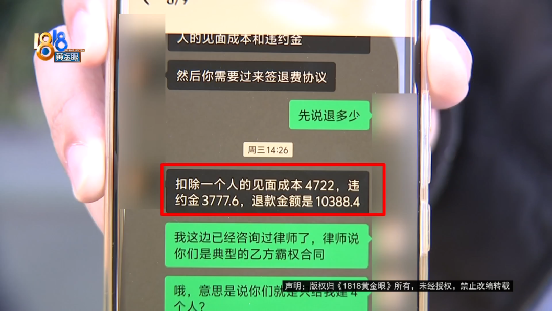 小徐说因为这次不愉快的经历,她提出退款,对方说是要扣除一个人的见面成本4722元,违约金3777元。