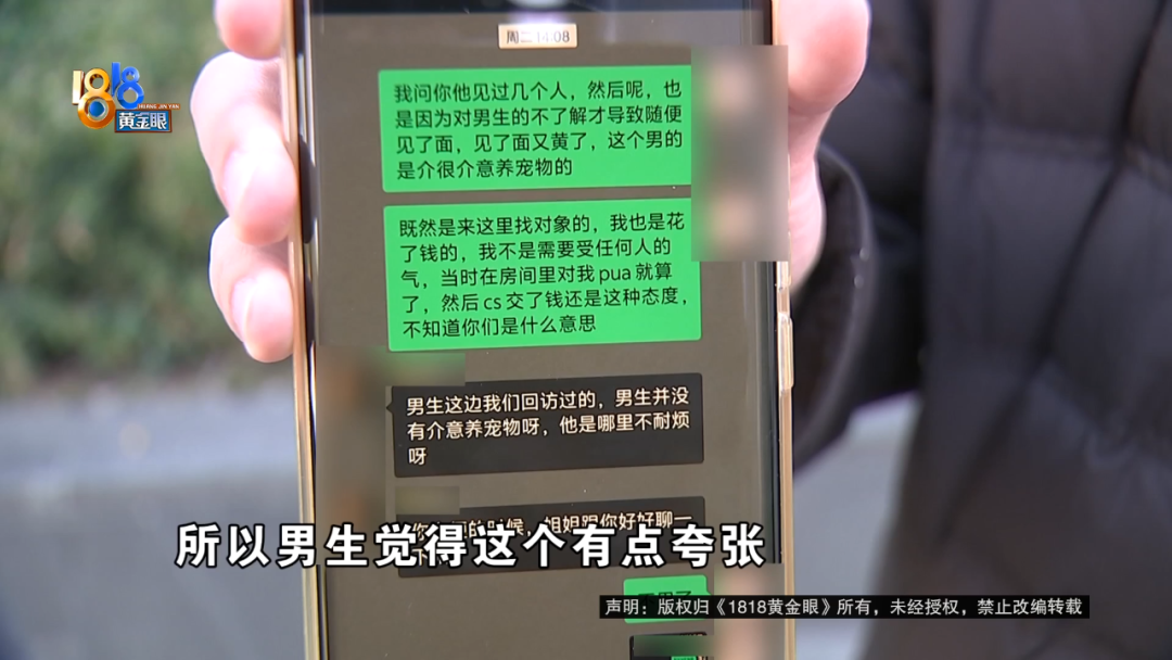 负责人说自己没有那位男生的联系方式,会让同事帮忙转交记者的电话,小徐还提到除了约见对象是否介意宠物的问题,工作人员的态度也让她不满意,她举了个例子。