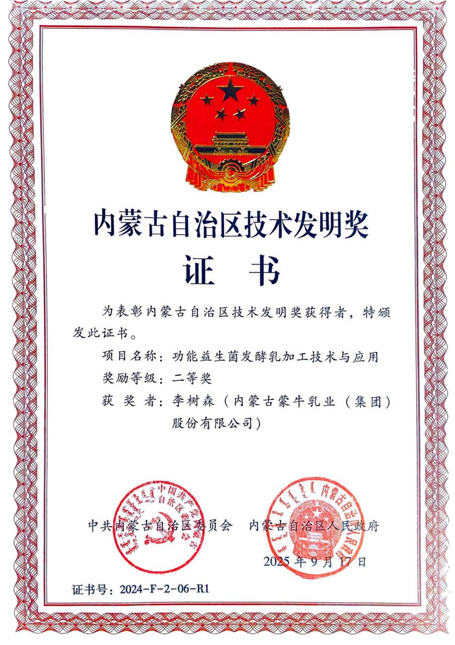 两项奖项的获得是内蒙古自治区政府、行业和消费者对蒙牛产品高品质的认可,充分体现了蒙牛在乳品核心技术攻关、产品创新和营养健康领域的持续领先。面向未来,蒙牛将继续聚焦科研创新驱动,不断推动乳业高质量发展,为消费者提供更营养、更健康、更高品质的产品。