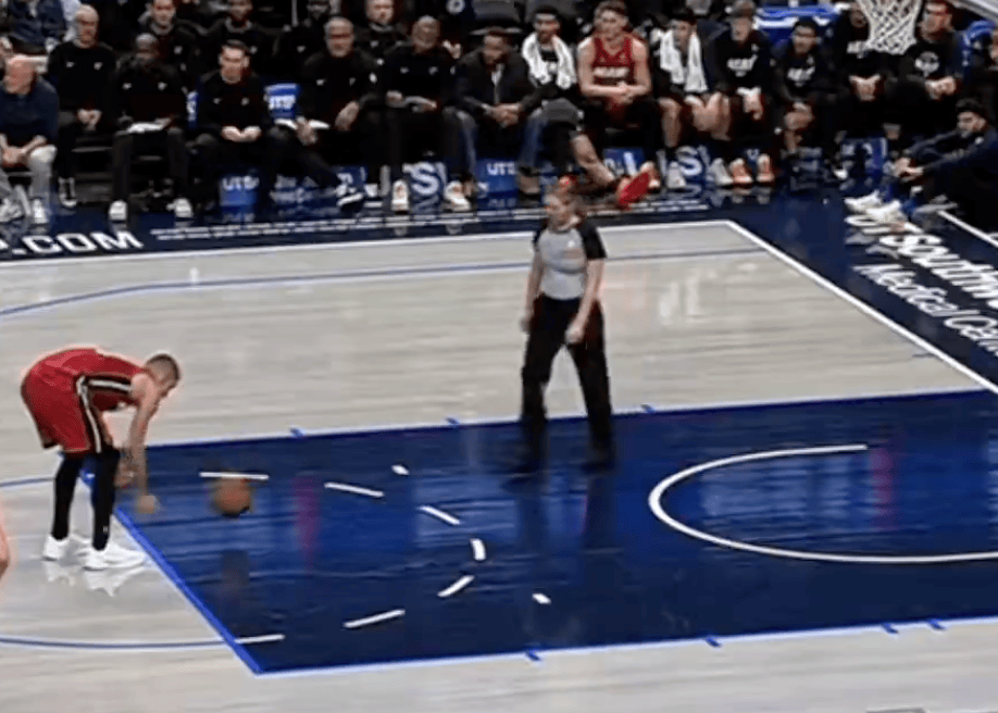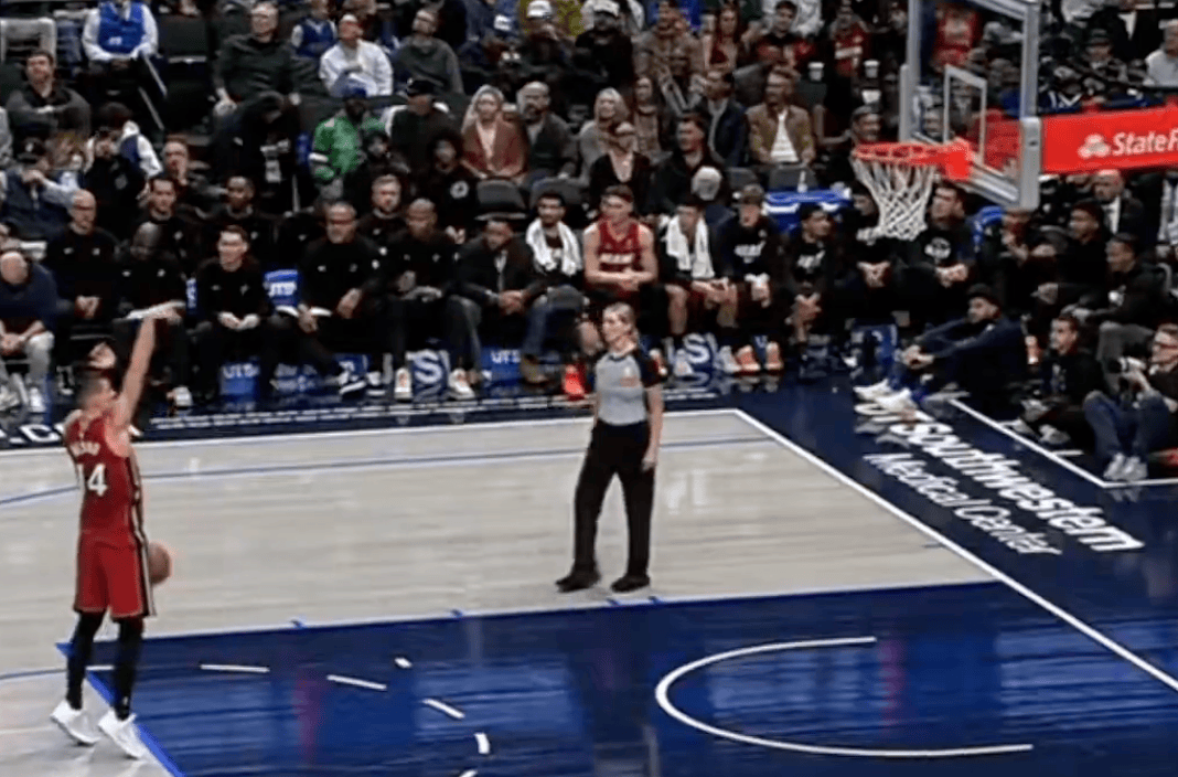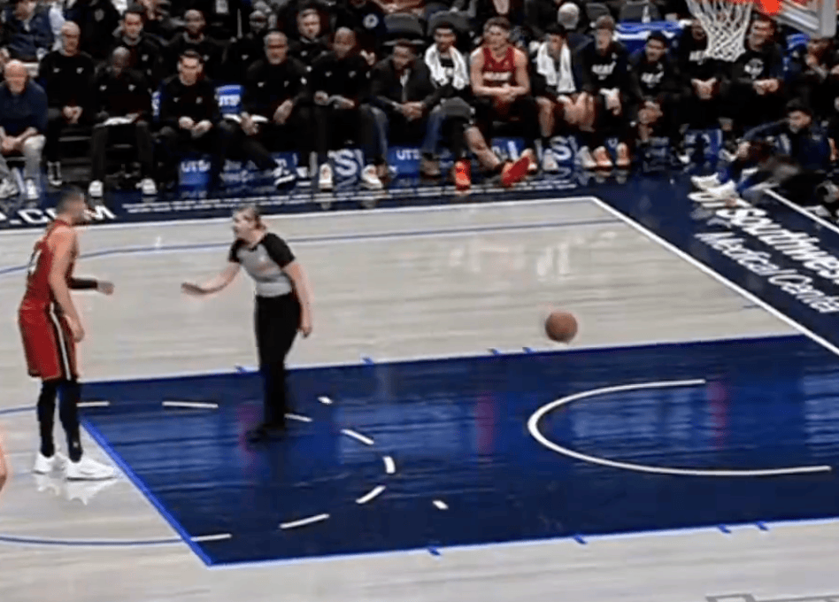 比赛进行中,热火后卫泰勒-希罗准备罚球做空手投篮动作时,被本场女裁判扔过来的篮球砸到裆部。随后希罗弯腰缓了一会,裁判也过来表达了歉意。