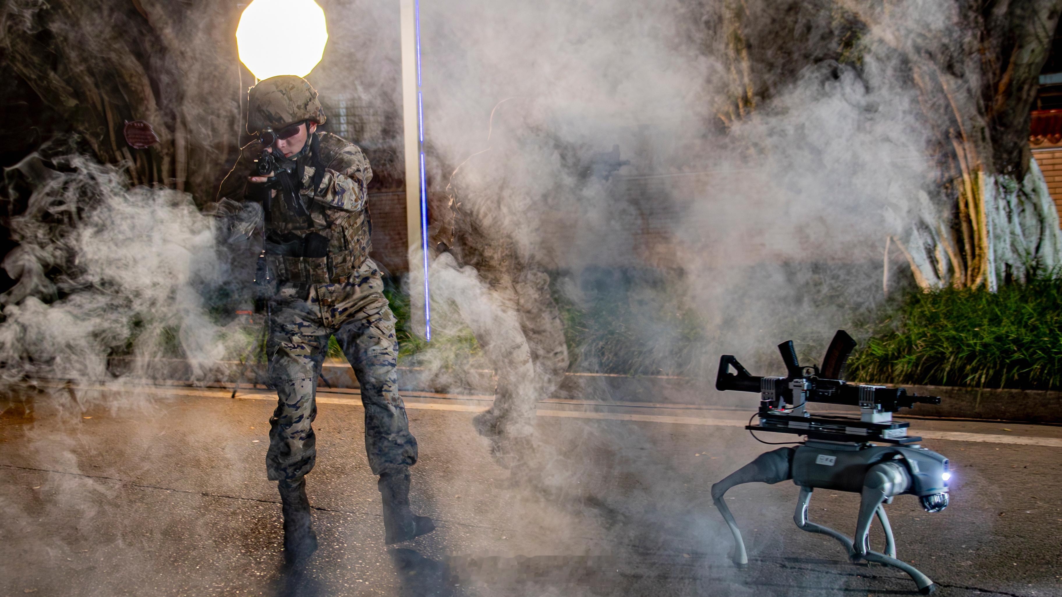 【尖兵出击!机器狗扛枪亮相】抵近侦察、快速渗透、搜缴残敌、潜伏狙击……近日,武警第二机动总队某支队组织侦察分队,在陌生地域开展无人装备协同训练。机器狗携装冲锋,与官兵无缝配合完成搜缴残敌等实战课目,科技赋能让侦察尖兵战力再升级!(侯高子文 郭云夫 蒋秋爽 刘靖雯 陈孝财 李钊 罗骞)