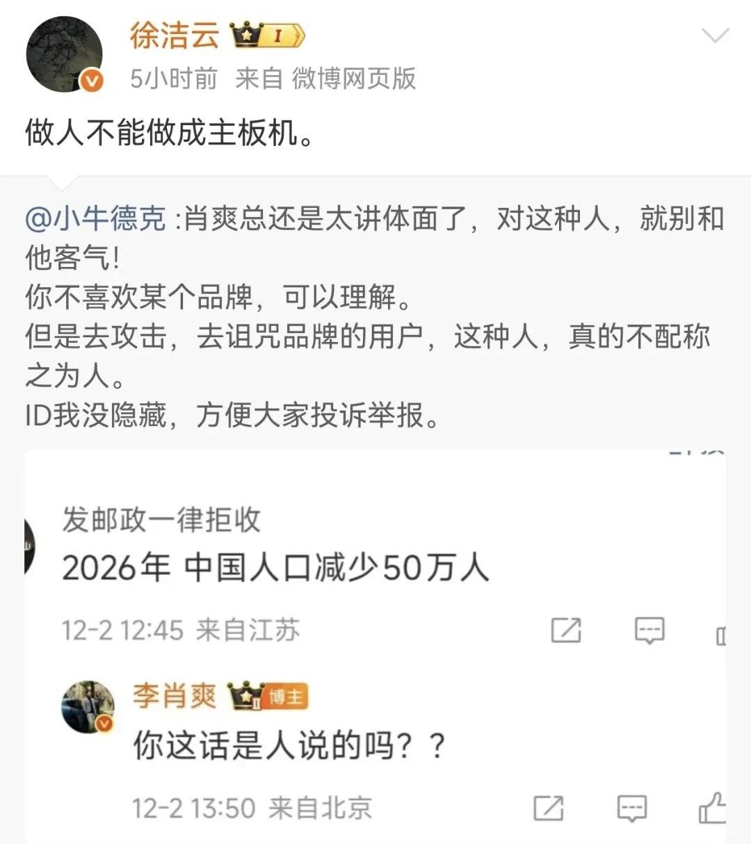 多个小米高管遭遇恶意骚扰 日前,小米多个高管遭短信轰炸:刚庆功就被搞。 有两位是小米的核心高管——徐洁云是小米集团新任公关部总经理,李肖爽是小米汽车副总裁。 就在小米汽车官宣“交付破50万台、提前完成年度目标”的当天,徐洁云手机突然被一堆验证码短信轰炸,直接发博吐槽“真是无聊”;李肖爽更惨,说“好多回了”,明显是长期被这类骚扰盯上了。 为啥会这样?就因为李肖爽在庆功微博的评论区,怼了个满嘴胡话的用户——那人把“小米交付50万台”恶意扯到“中国人口减少50万”,李肖爽直接回了句“你这话是人说的吗”。结果转头就被报复,连帮着发声的公关总徐洁云也被牵连了。 说真的,不管你对小米是粉是黑,这种操作都太没底线了,好在平台没惯着,把那挑事的账号永久封了。互联网大厂 小米 短信轰炸 恶意骚扰