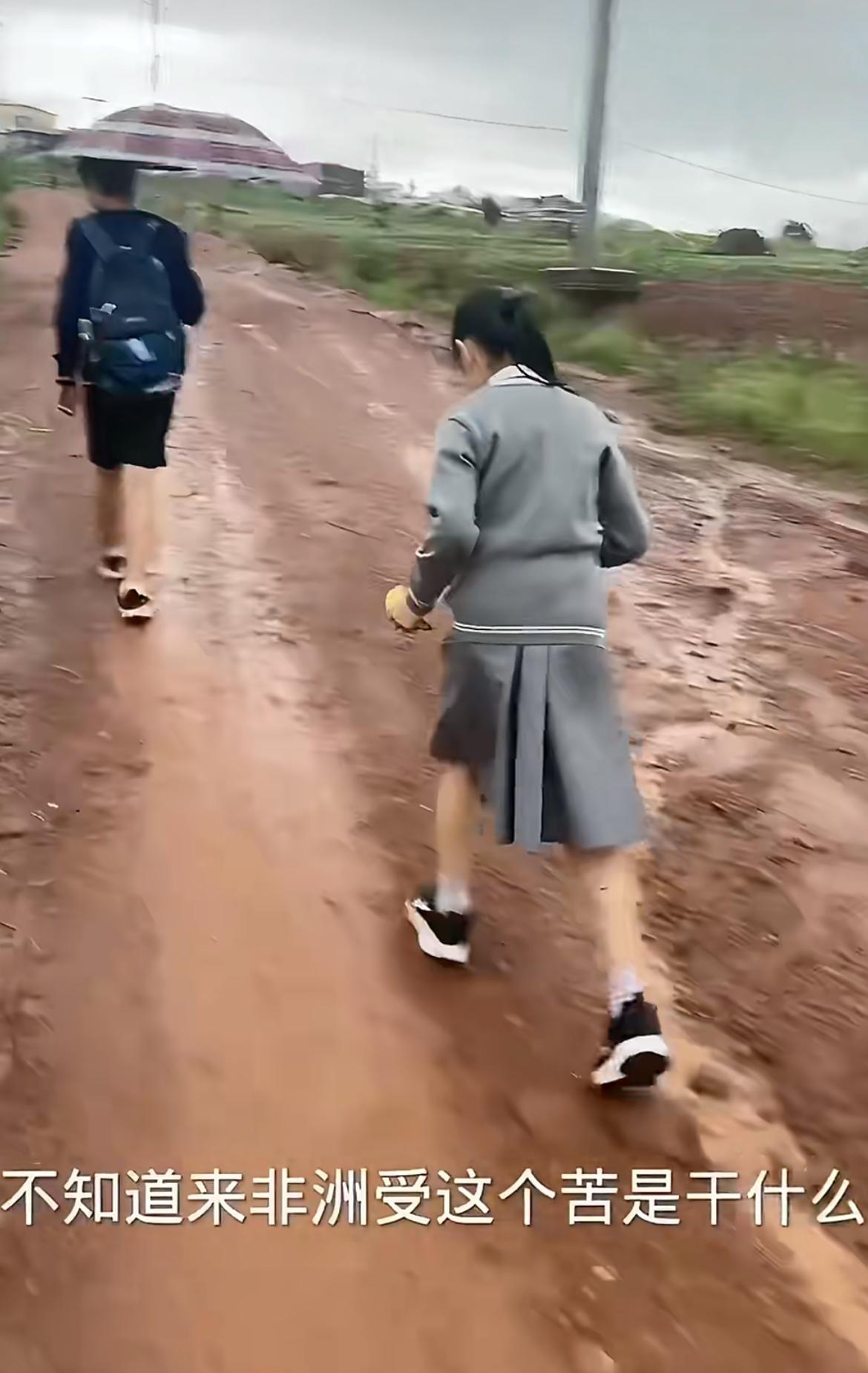 一个家长让孩子放弃上海名校,带着两孩子万里迢迢到非洲学校上学,这是没苦硬吃。看着满是泥泞的上学路,有点像四十年前的乡村田间小学。校门口满是接送孩子的汽车,路是土路,雨天一身泥,晴天一身灰,人车混行不安全。和满是黑黑孩子的同学在一起学习,能学到什么东西,家长脑子进水吗?非洲学生在中国 非洲学生来华