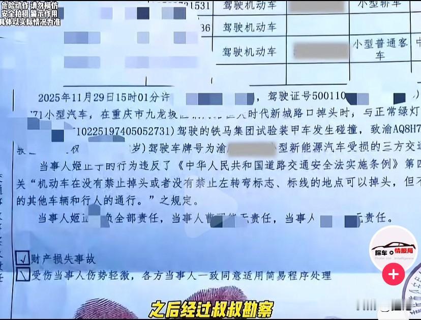 近日,重庆九龙坡区一个路口发生了一起离奇的车祸,道路上一辆装甲车正在正常行驶,这时对向车道的一辆白色轿车忽然在路口掉头,装甲车虽然尽力刹车,但还是躲闪不及撞上白色轿车尾部。 撞击造成白色轿车保险杠脱落,车尾部开裂,零件散落一地,而且巨大的撞击力导致白色轿车失控后又撞到了一辆蔚来新能源汽车。 事故责任几乎毫无悬念,转弯让直行,白色轿车在转弯时没有注意观察道路情况,阻碍直行车辆通行,所以要承担事故的全部责任,装甲车和蔚来都没有责任。 从视频可以可以看出,白色轿车当时在转弯时,装甲车已经距离很近了,而白色轿车几乎没有做任何停车观察,也没有看道路上有没有车辆,就直接就旁若无人的转弯掉头,这种开车法出事是早晚的事。 只是没想到这次碰上硬茬子了,直接撞上了装甲车,估计保险公司在接到电话时也懵了,这么离谱的事都能发生,还好装甲车没被撞坏,要不那可真是赔大了。 同时,事件也给广大驾驶员们提了个醒,开车在路上一定要守规矩,该等的等,该让的让,不要争道抢行,更不要把马路当成自家客厅,安全文明驾驶,即是对他人负责,也是对自己的安全负责。