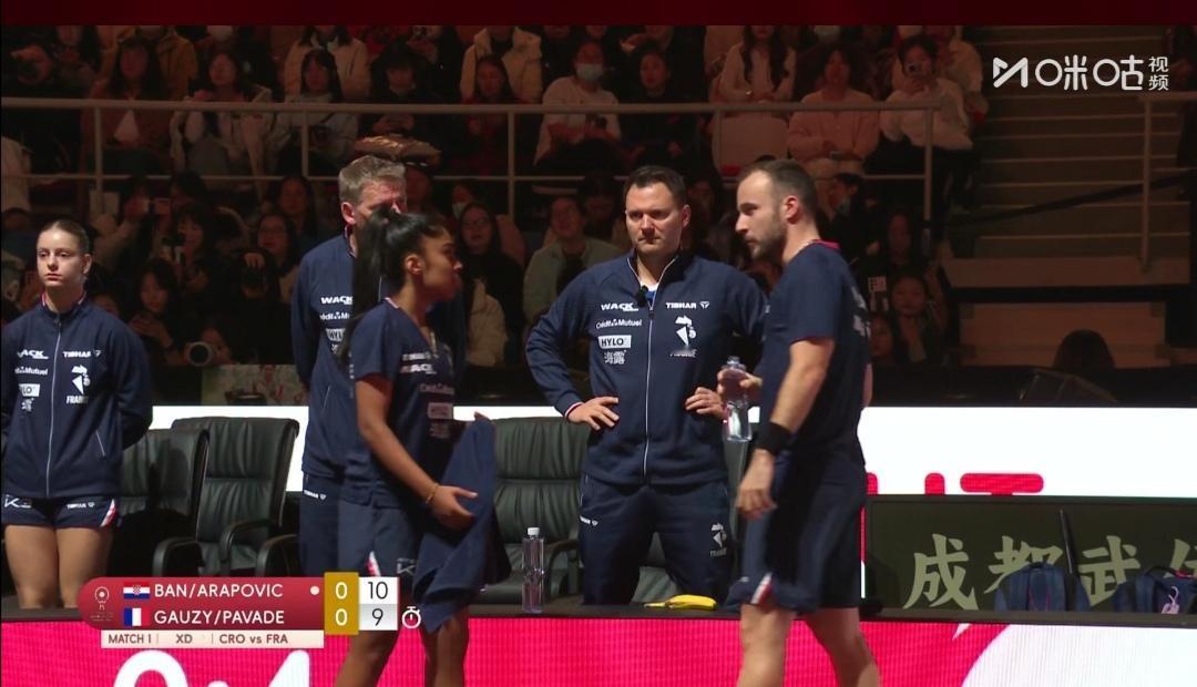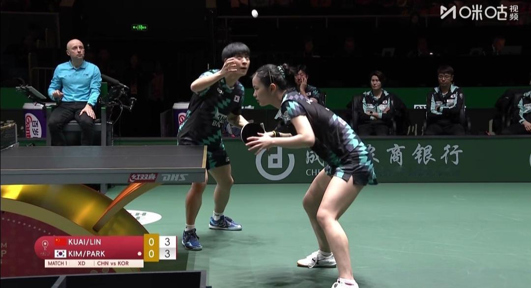 没想到第2轮中国队8:0零封韩国队! 成都混合团体世界杯第二阶段循环赛,第2轮。 中国队vs韩国队 中国队卫冕冠军! 韩国上届亚军,3号种子队。 韩国主教练说了,除了中国队外,其他球队水平接近,谁发挥得好,谁就取得胜利。 韩国队有自知之明,雪藏了一哥张禹珍、一姐申裕斌! 中国队8:0零封韩国队! 这一点韩国队是意料之外,一局未得的! 第一盘混合双打 林诗栋/蒯曼3:0(11-5;14-12;11-8)零封韩国朴康贤/金娜英。 第二盘女单 王曼昱3:0(11-7;11-7;11-8)零封韩国李恩惠。 第三盘男单 王楚钦2:0(11-9;11-5)零封韩国安宰贤。 ~~~~~~~ 同时开始的还有另一场欧洲对战。 克罗地亚队Vs法国队 两队场变阵了,今天一定争一个你高我低! 第一盘混合双打 伊沃本/阿拉波维奇1:2(11-9;6-11;14-16)负法国高茨/帕瓦德。 第二盘女单 拉科瓦奇0:3(11-13;3-11;5-11)不敌法国小将卢茨 第三盘男单 普卡(11-8;)法国A•勒布伦 目前克罗地亚队2:5落后法国队。