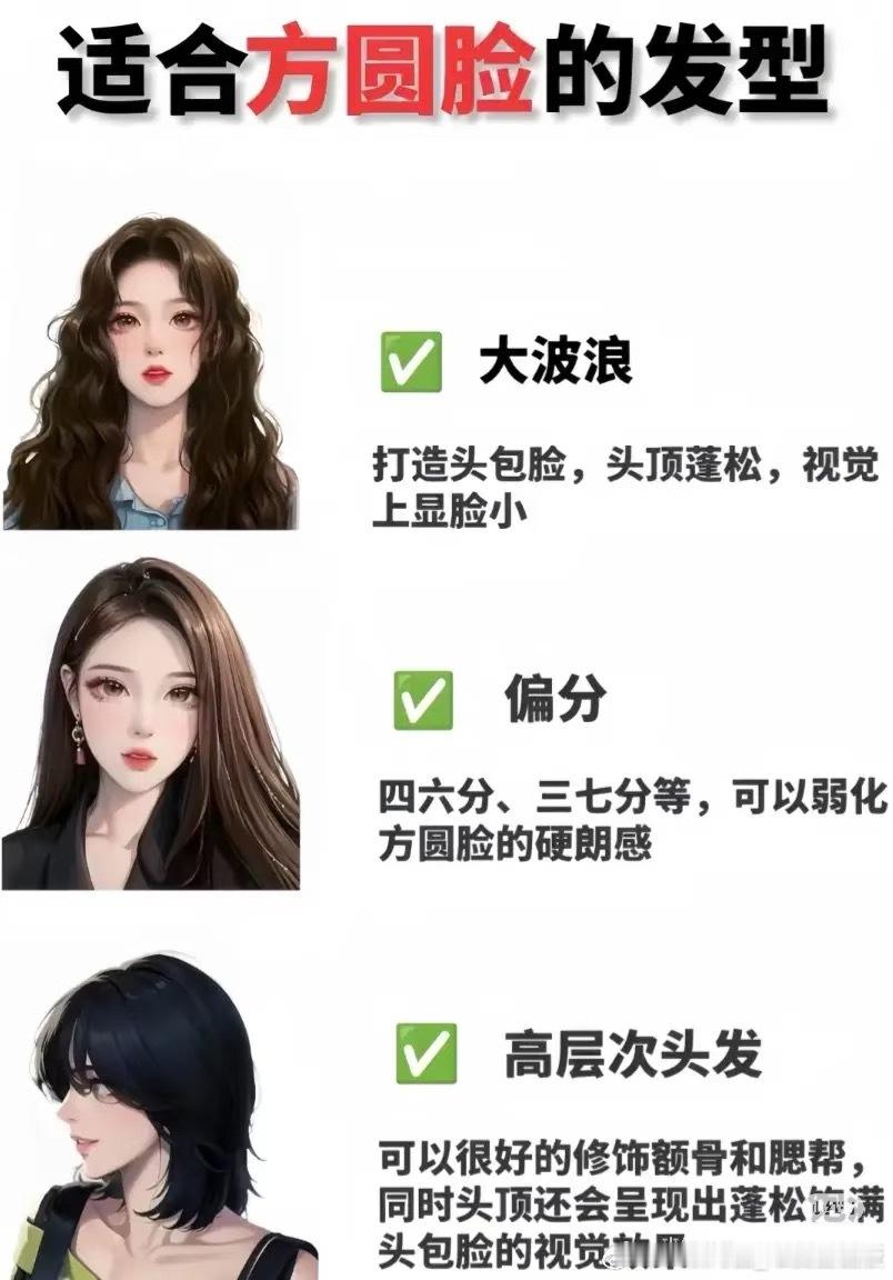 适合方圆脸的人生发型适合方圆脸的发型:法式慵懒卷发:长度过锁骨5-8cm,从耳中位置开始自然大弧度卷度,发尾带轻微外翻或内扣,两侧发丝自然垂落修饰腮部;刘海选轻薄空气刘海或八字刘海,碎发感强,顶部轻轻蓬松,弱化脸部方正感,自带温柔随性气质。2. 层次锁骨发:整体长度到锁骨处,外层做高层次剪裁,内层保留一定厚度,发尾修剪成不规则碎发;可侧分或中分,两侧头发贴脸但不贴头皮,利用层次线条中和下颌角的硬朗,日常好打理,兼具干练与柔和。3. 羊毛卷短发:长度控制在耳下3-5cm,从发根开始做细小但不紧凑的羊毛卷,顶部适当增高,两侧卷发自然包裹脸颊;刘海选短款空气刘海或无刘海露额,用卷发的蓬松感修饰脸部轮廓,显脸小且活泼俏皮。4. 长直发(带碎层):头发长度过胸,整体直顺但外层做细碎层次,避免贴头皮;侧分或中分,两侧发丝自然垂坠,发尾可轻微打薄;利用直发的纵向线条拉长脸型,碎层减少生硬感,适合喜欢简约气质的风格。5. 韩式木马卷:中长发长度,卷度从下巴位置开始,大弧度且带有自然纹理,卷尾不刻意定型,呈现“慵懒回弹”感;搭配轻薄八字刘海,顶部用吹风机吹至微微蓬松,两侧卷发刚好遮住下颌角,温柔又显脸小。