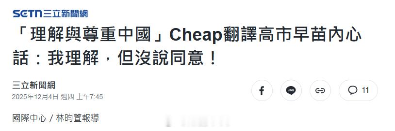 高市早苗终于不嘴硬了 别自嗨了,高市那叫玩文字游戏,什么叫理解与尊重:我承认这事的存在,不否认有这事;但我不认可这事的合理性 再直白的说,我知道中国对台湾有统一的诉求,但我反对中国要统一台湾