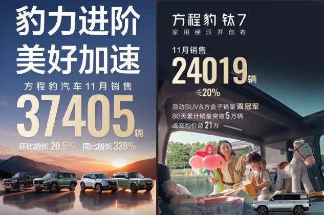 在刚刚过去的11月,比亚迪单月销量突破48万辆,再创年内新高。而更让人惊喜的是,比亚迪11月海外销量突破10万来到131661辆,同比大涨297%。可以说,现在的比亚迪除了国内市场的持续领先,在海外市场上也是突飞猛进。 而在这48万多的销量中,推出没多久的个性化品牌方程豹更是引人注目,钛7在11月卖出了24019辆,全系车型更是达到了37405辆,销量比肩“蔚小理”,可以说是比亚迪向高端化迈进的重要一步。 回看今年1-11月,比亚迪累计销量已经突破418万辆,同比增长11.3%,完成了全年目标的91%,基本锁定中国汽车市场车企2025年度销量冠军。更重要的是,比亚迪海外市场累计销量也已经突破了91万辆,这意味着比亚迪不仅在国内市场持续领跑,全球市场的影响力也来到了全新的高度。 从国内市场到全球市场,从单一车型到全品牌布局,比亚迪凭借产品矩阵和销售体系,在新能源时代快速崛起。今年1-9月份,比亚迪品牌全球销量超越现代来到第四名,作为目前榜单中唯一的中国品牌,比亚迪正在以耀眼的成绩不断突破中国品牌的天花板。比亚迪品牌向上不断前行,比亚迪海外征程也在加速布局,418万辆销量的背后,是比亚迪技术引领的体现,也是中国品牌快速崛起的缩影。重塑全球新能源市场格局,以比亚迪为代表的中国品牌,必将写下全球汽车市场的全新篇章,比亚迪的全球故事也将迎来更澎湃的一段。
