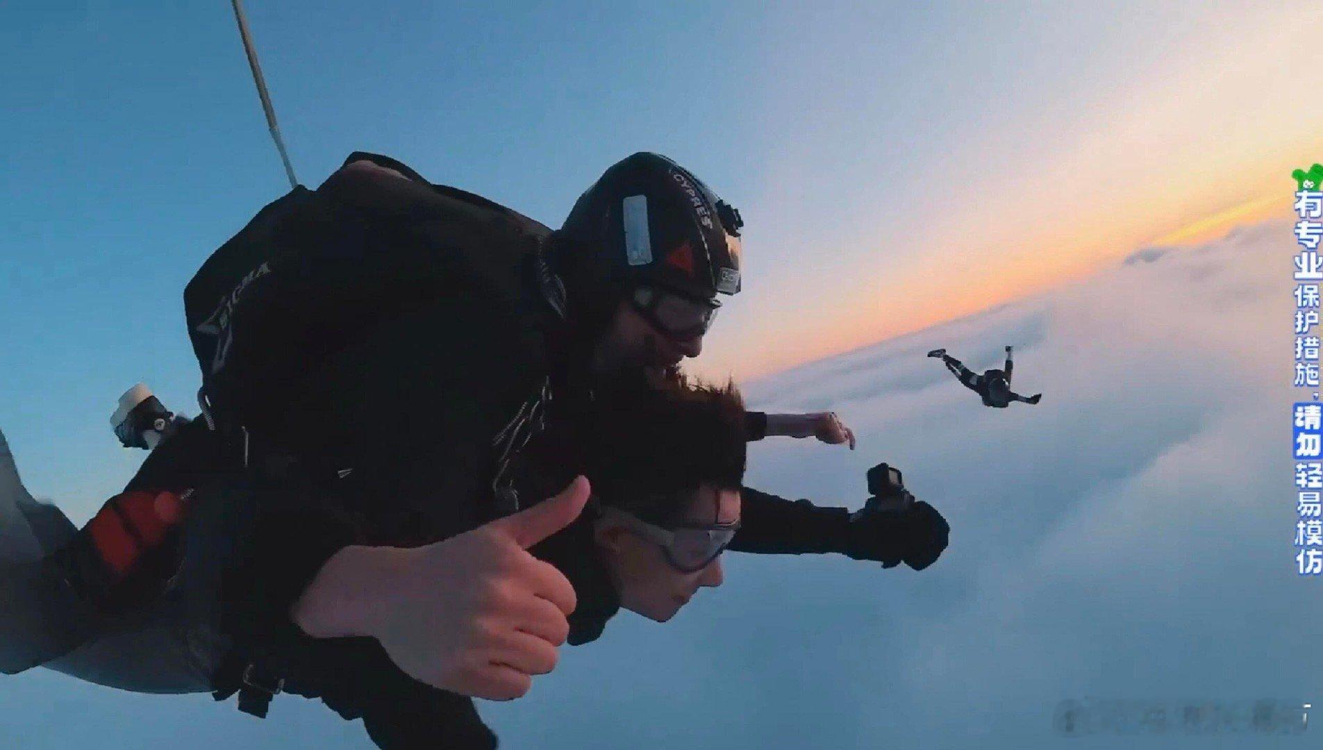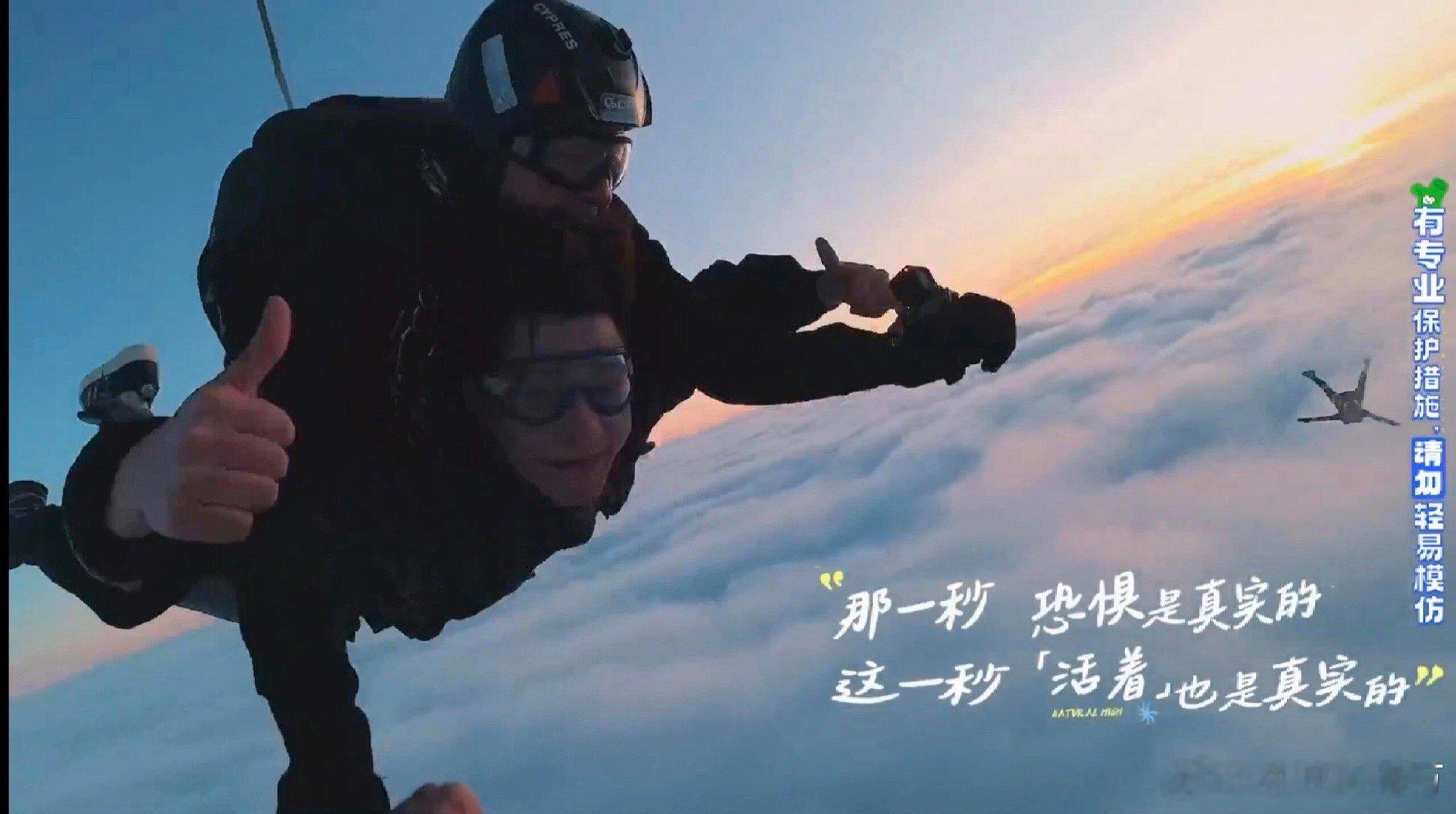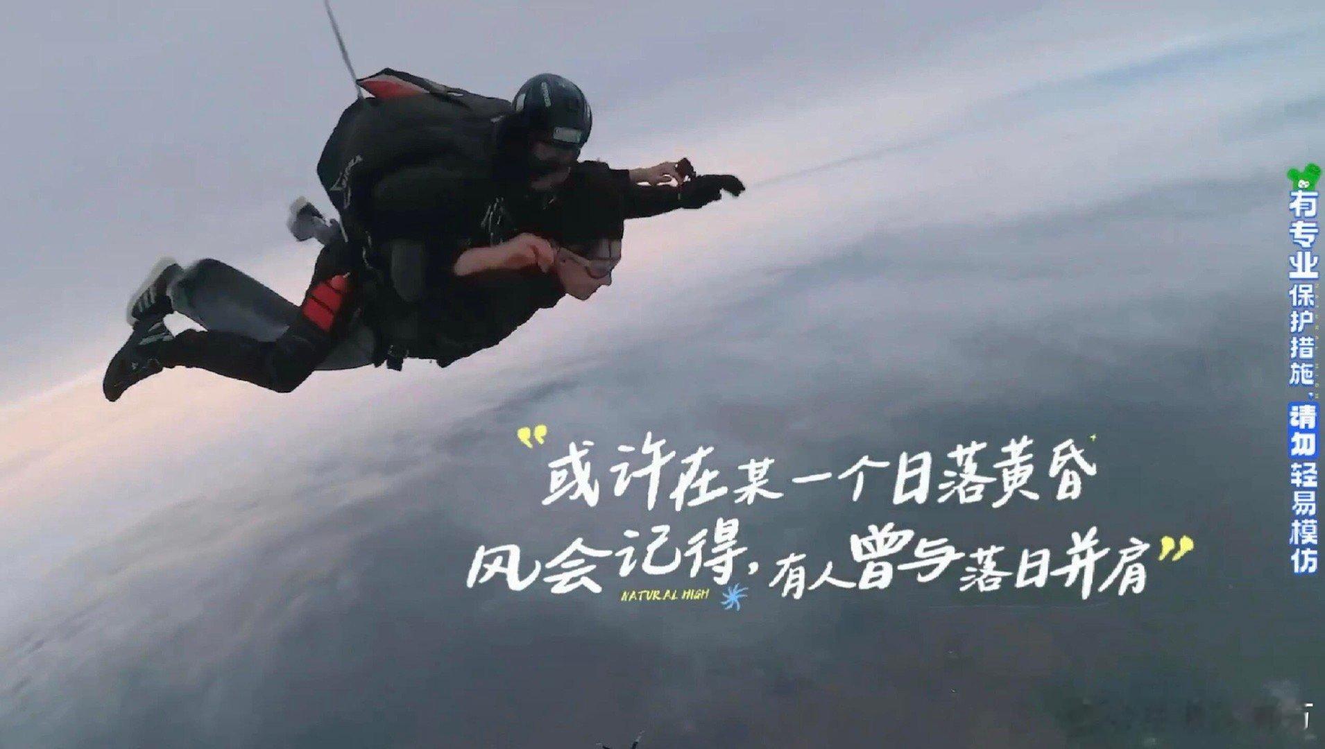 大眼杯表彰小会就这个现发燃!《现在就出发》这一幕的自由感我要专门拉出来表彰呜呜呜呜!看到最新一集跳伞真的好激动!他们的紧张忐忑、恐惧害怕真的可以感同身受,而平流层美丽的夕阳又仿佛给大家都打了一剂强 心 针,温暖又治愈~看得出来王安宇特别紧张哈哈哈哈一直在说话给自己鼓劲,鲸鱼一声不吭 沉默的害怕,冰哥是真勇啊云淡风轻,他们跳下去的时候真的好壮观!和现发团云体验了一次难忘的人生时刻……生活偶尔有阴霾,但继续向上,终乍破天光,或许在某一个日落黄昏,风会记得,有人曾与日落并肩……