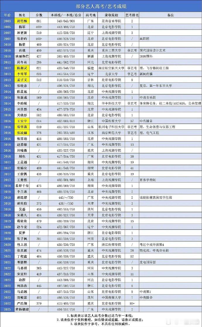 高考成绩有什么好拉表的有本事拉没高考/没读高中/上中专的艺人名单