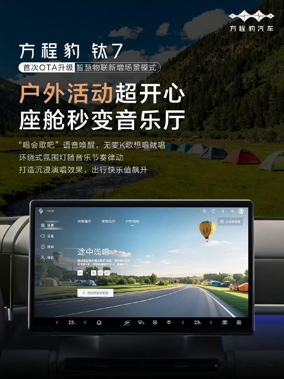 方程豹钛7首次OTA正式开启推送日常通行超省心,解锁生活仪式感宝宝出行超放心,全家带娃更轻松户外活动超开心,座舱秒变音乐厅钛7混动SUV&方盒子销量双冠军