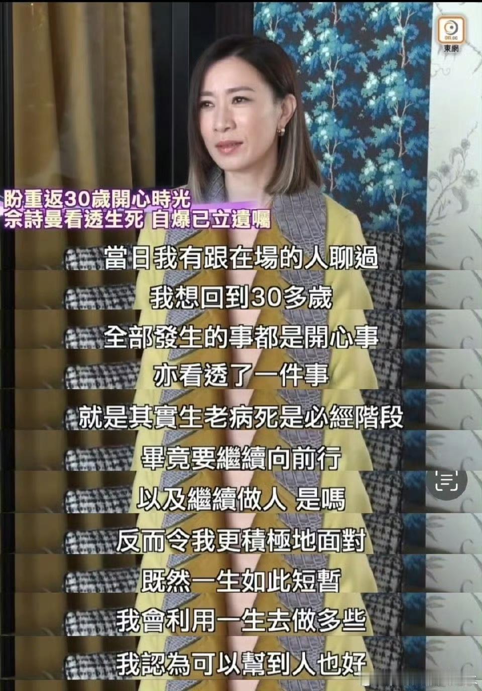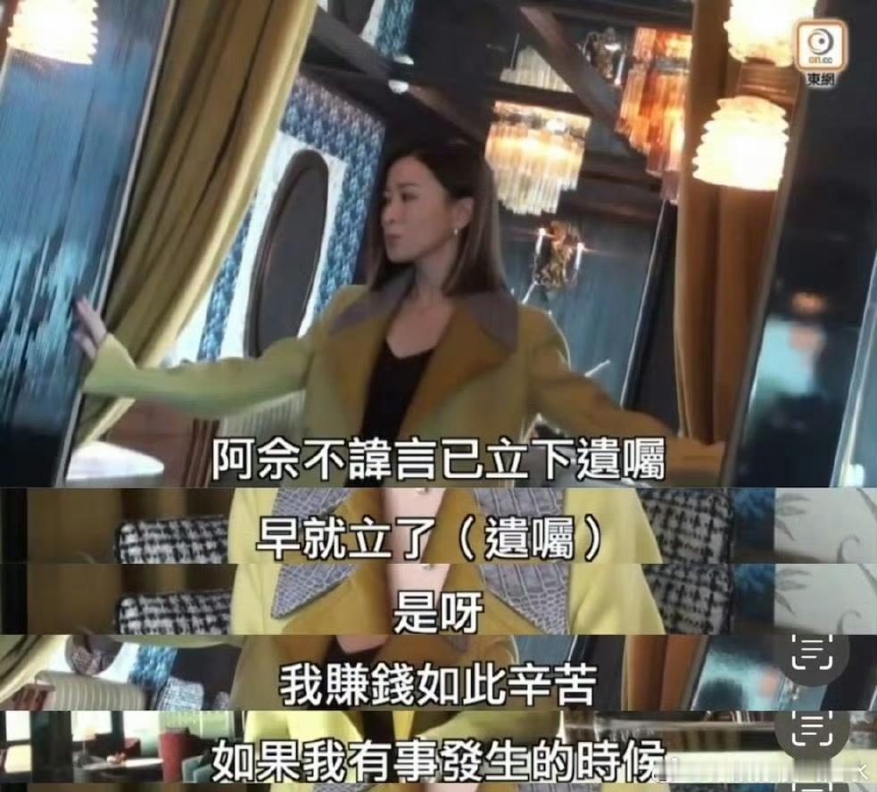 佘诗曼自曝已立遗嘱,50岁活得太通透:“赚钱如此辛苦,如果我有事发生的时候,不要浪费”! 佘诗曼在接受采访时坦然透露早已立好遗嘱,直言“我赚钱如此辛苦,如果我有事发生的时候,不要浪费我毕生积蓄,不要乱用。我希望可以按照我的意向去分配。”她把逾两亿资产按意愿分配给母亲和兄弟。 佘诗曼因干爹许绍雄及多位港圈前辈离世深受触动,曾在追悼仪式上坦言"生老病死是人生必经阶段"。 她说想回到了30多岁的时候,那时候开心事真的很多。可现在了50岁,得面对生离死别,只能调整自己。 她拒绝被“女性必须结婚生育”的传统规训绑架,直言“已过生育憧憬期”,坚守“一生只需对自己交代”的初心,用法律形式明确“不靠婚姻定义价值”。 在华人社会仍将“身后事”视作禁忌时,她用一纸遗嘱撕开传统枷锁,既护亲情,更掌人生主权,活成了内娱少见的清醒范本。