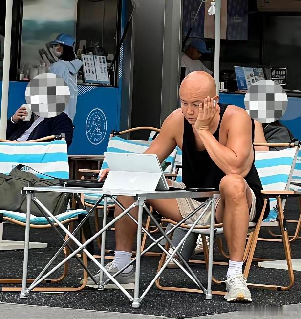50岁乐嘉现身深圳海边度假,他穿着无袖上衣,露出一身小麦色皮肤,身材好壮硕,男性荷尔蒙爆棚!他看着桌上的平板电脑,疑似是在办公,看起来好悠闲啊!他慢节奏生活,他慢慢享受生活。