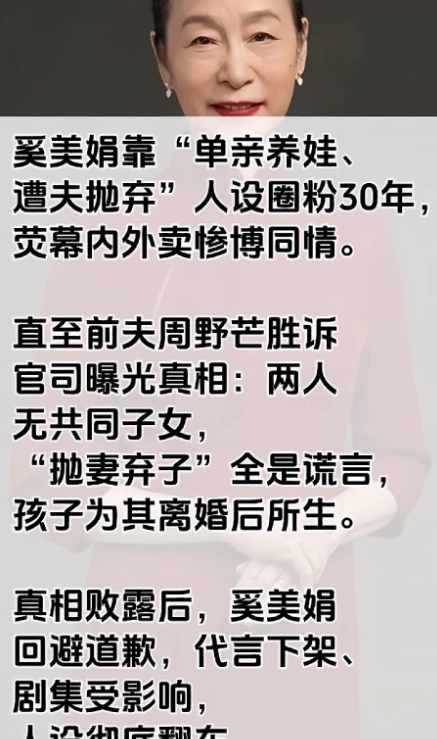 2023年法院公开判决书,撕开了娱乐圈藏了三十年的骗局,奚美娟人设彻底崩塌。以