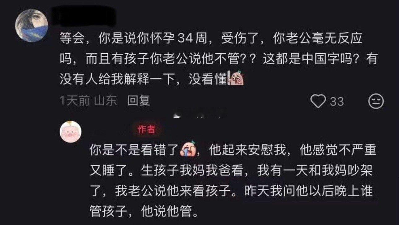 太典了 怀孕34周被猫不小心抓伤流血 她老公起来问一句就接着睡觉了 还要替她老公辩解“他说了以后他带孩子” 这种人我发自内心的当笑话看