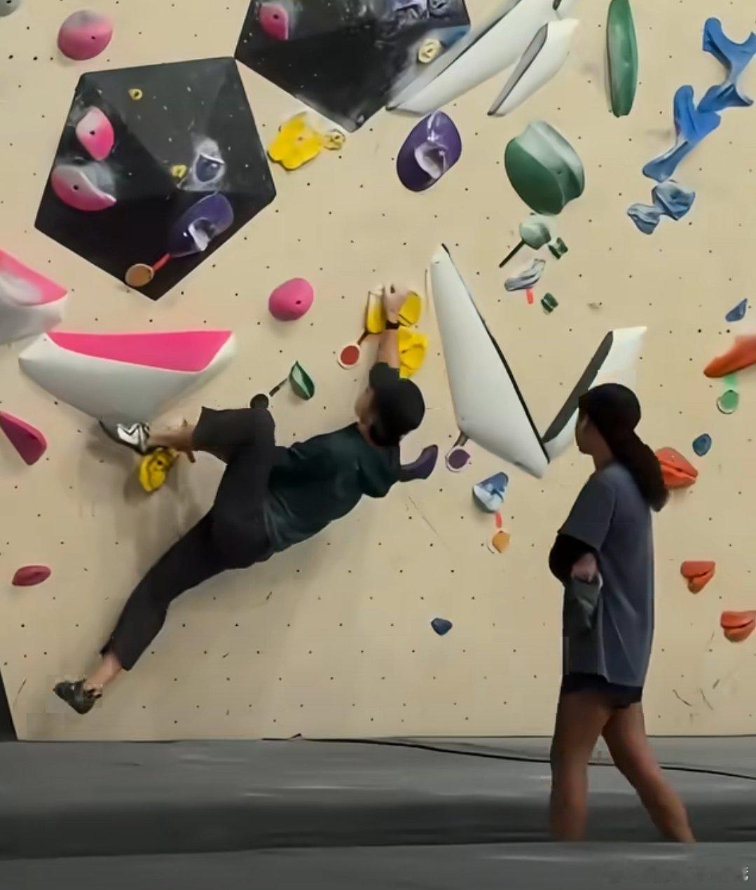王一博昨天还在香奈儿看秀,今天已经被路人偶遇在岩馆攀岩了,真的要做岩羊了