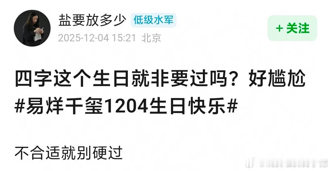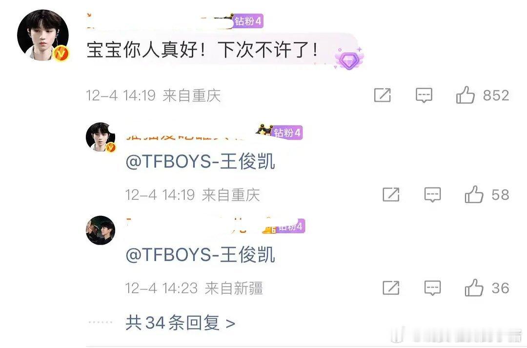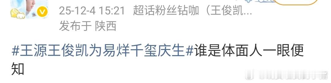 其实我觉得三小只以后真没必要维持这种虚假的体面了,王俊凯粉丝在庆生博下面说以后不许这样做了,易烊千玺粉丝又说在硬蹭🥲