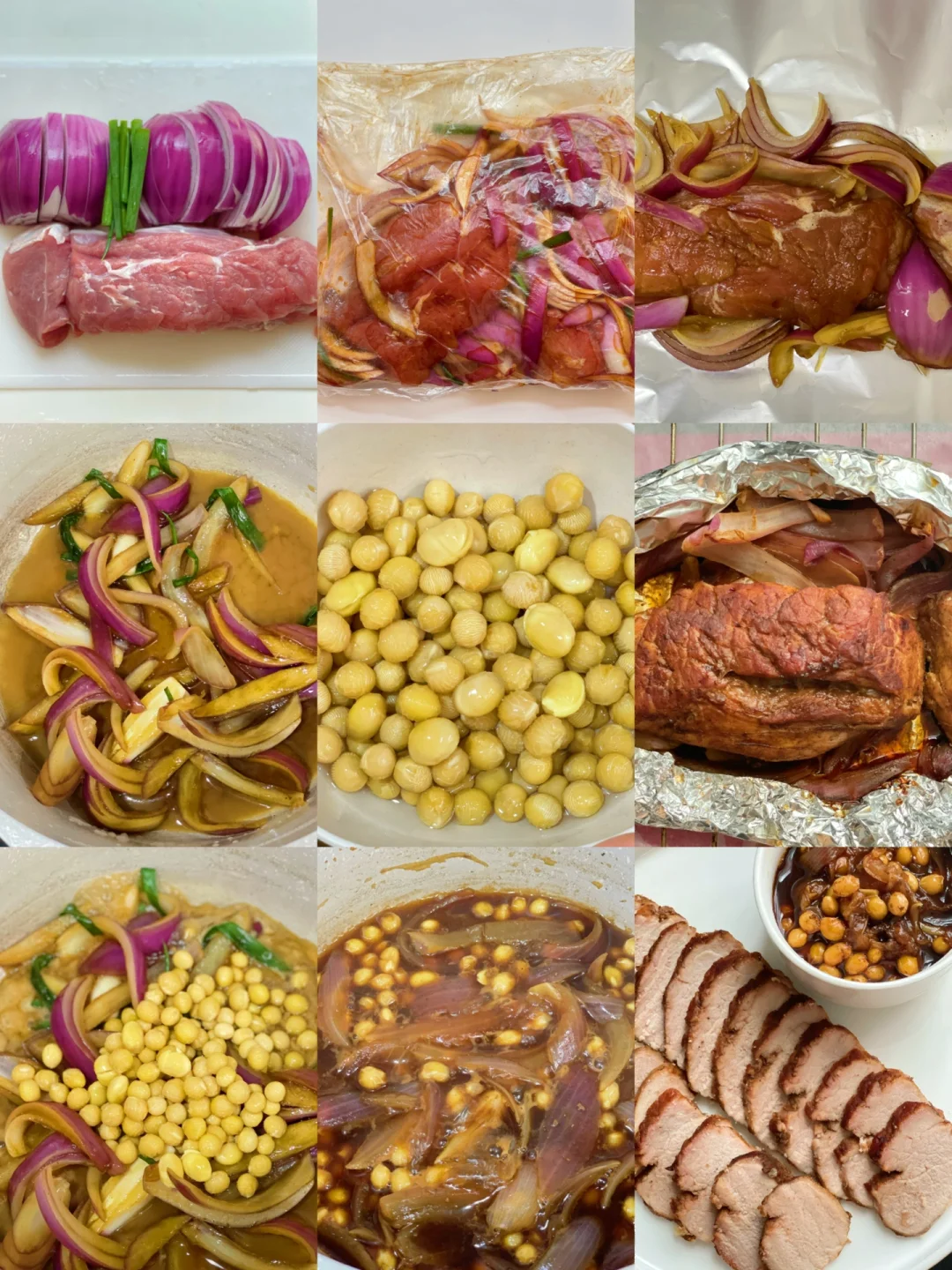 瘦肉(梅柳)|洋葱|葱|蚝油|生抽|老抽|五香粉|黄豆|0卡糖