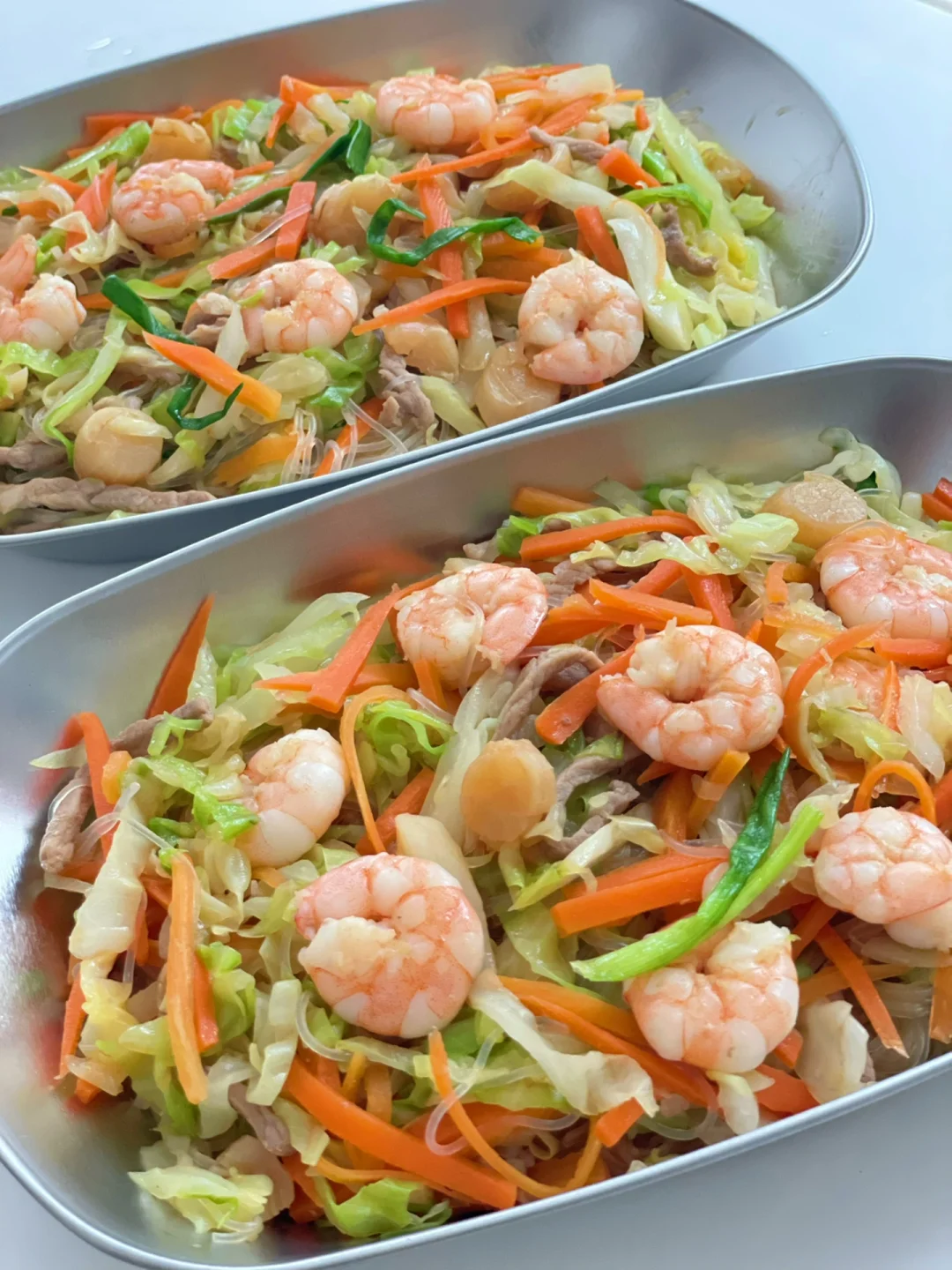 包菜|胡萝卜|虾仁|瘦肉|干贝|粉丝|生抽|盐