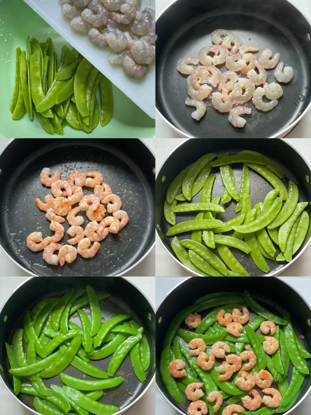 ❤️荷兰豆很清甜,炒荷兰豆除了盐其他调味都不需要。虾仁我是提前买的新鲜虾去头去壳放冰箱冷冻备用的,用超市买的虾仁也是可以的。