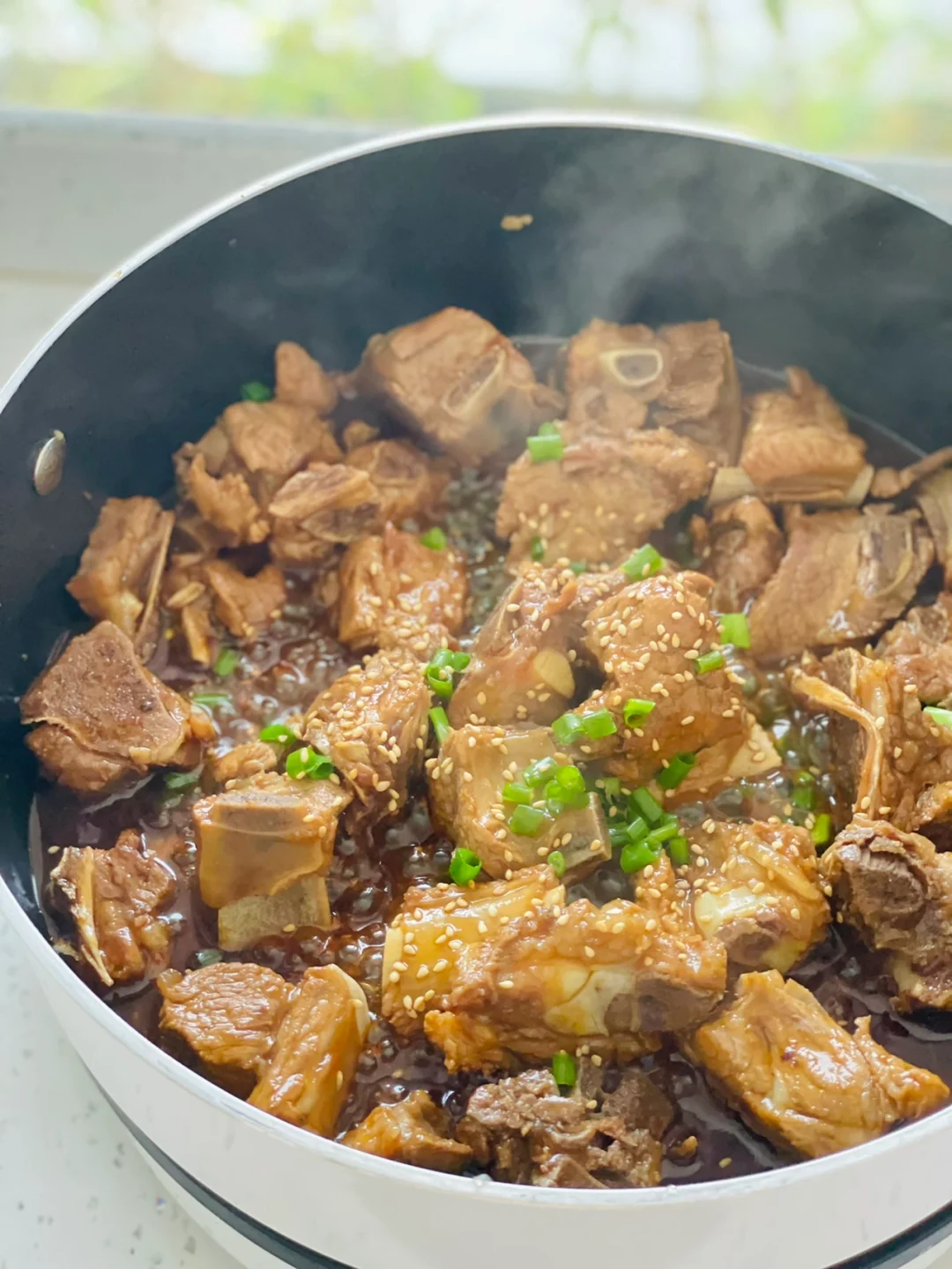 4️⃣加入0卡糖、老恒和玫瑰米醋继续焖煮到汤汁稍微浓稠