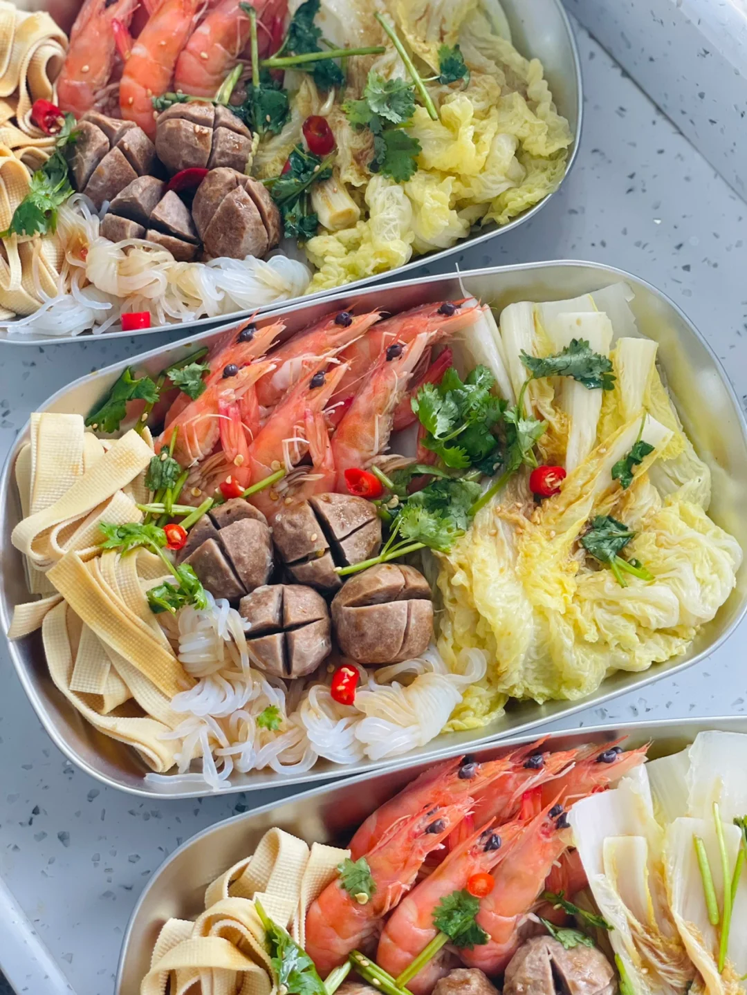 笔记灵感 🌟低卡拌菜 虾|牛肉丸|魔芋结|千张|娃娃菜|香菜|小米辣|蚝油|生抽|芝麻|陈醋 1️⃣千张切丝,娃娃菜洗净剥开,牛肉丸表面划十字 2️⃣娃娃菜,千张丝,牛肉丸,魔芋结,虾分别烫熟 3️⃣调料汁:生抽:蚝油:陈醋=3:2:1,放入香菜,小米辣,熟白芝麻拌匀 4️⃣料汁浇上拌匀开吃 ❤️牛肉丸选的低卡牛肉丸,满满的一份饱腹感极强午餐,晚餐这样吃都很满足。