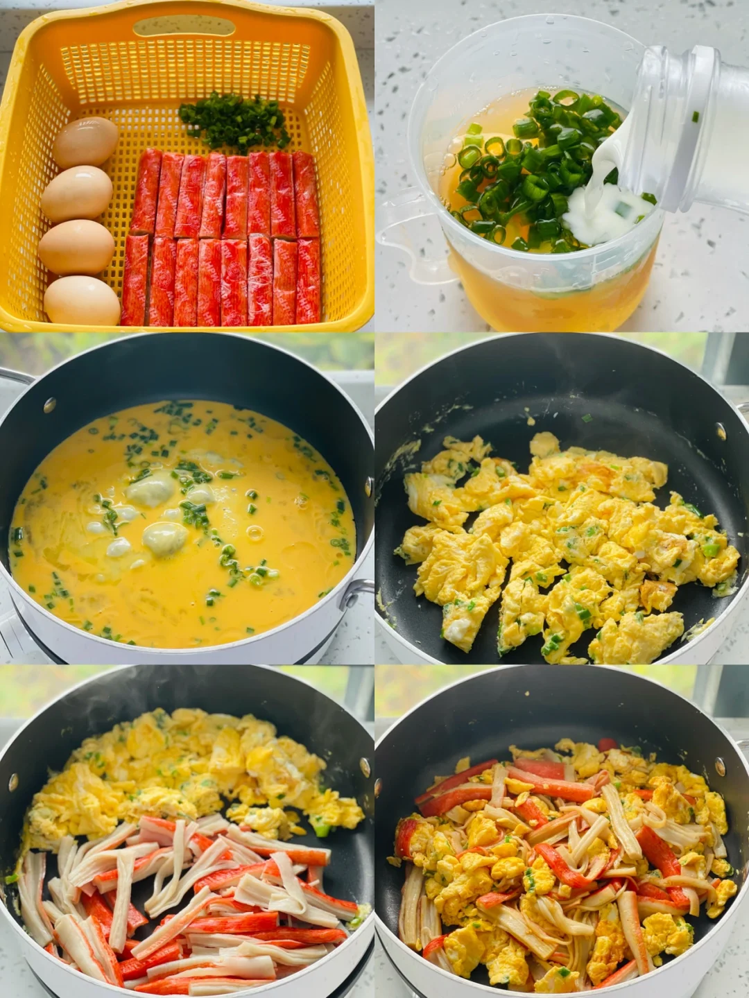 ❤️鸡蛋加牛奶吃起来口感蓬松更香,这道菜不需要放太多调料,蟹棒本来自带咸味了。
