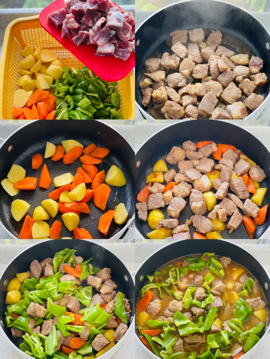 1️⃣牛肉、青椒、胡萝卜、土豆切块