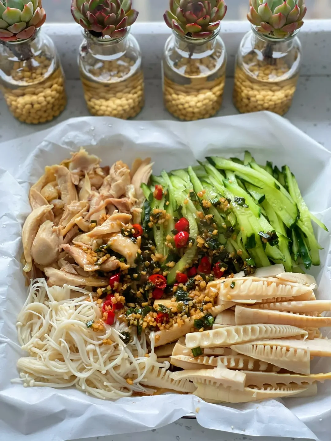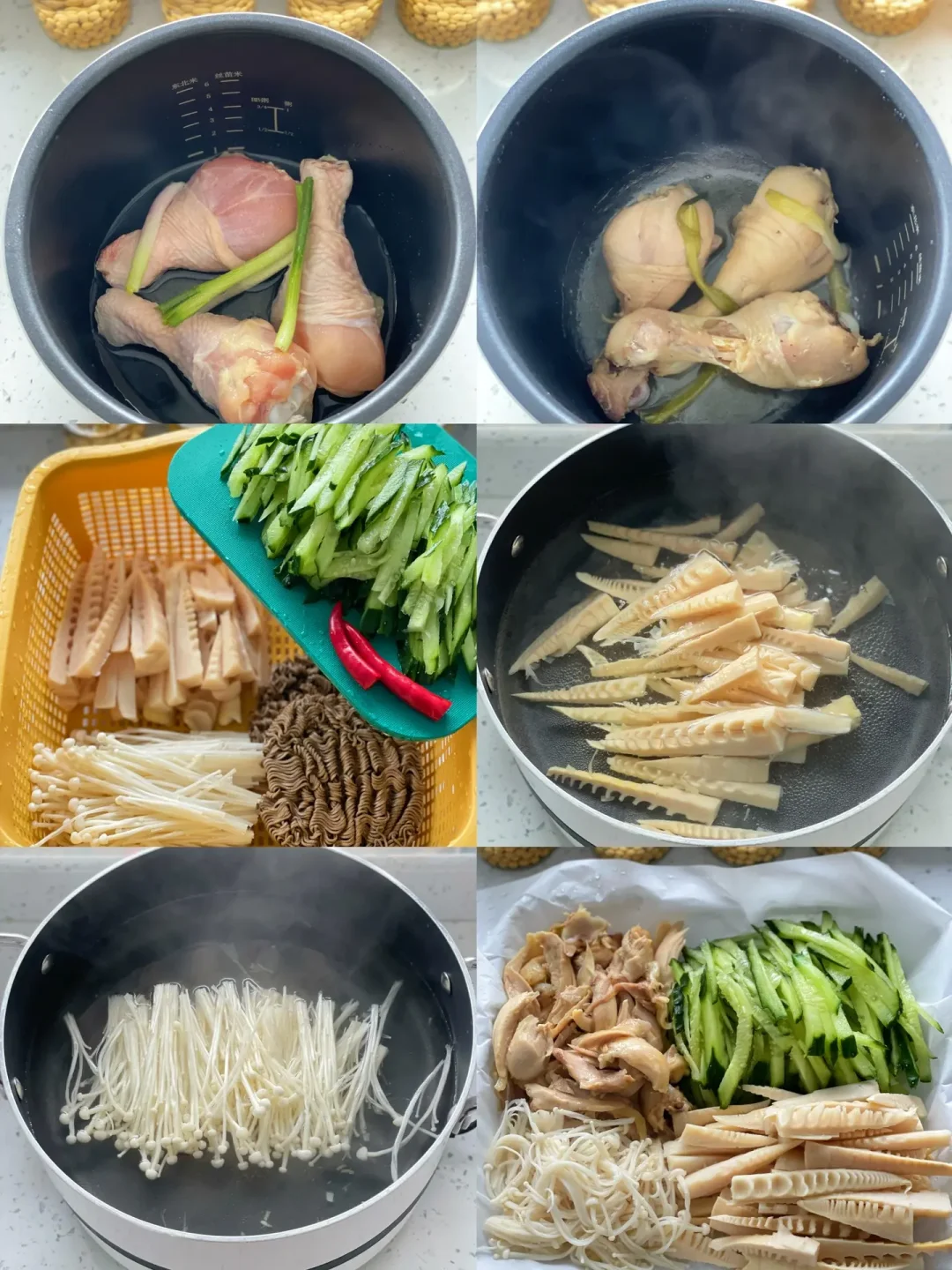 春笋|鸡腿|黄瓜|金针菇|蒜|小米辣|葱|生抽|芝麻油|陈醋