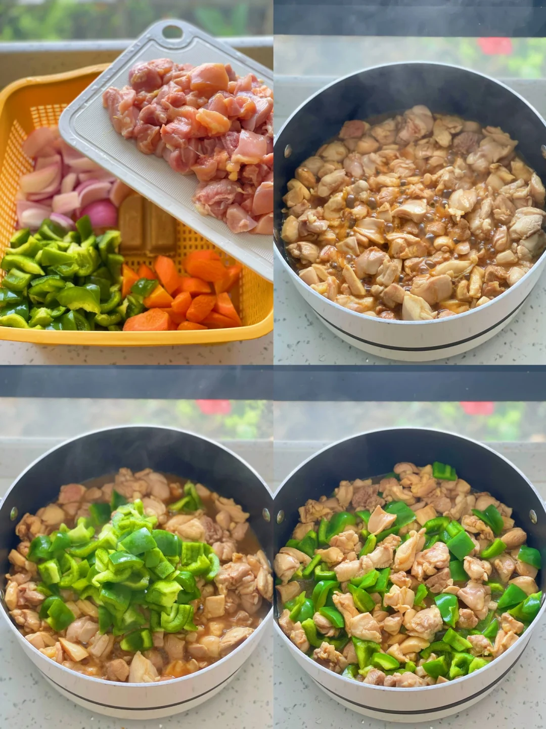 去皮鸡腿肉|青椒|胡萝卜|洋葱|日式咖喱块|生抽|蚝油