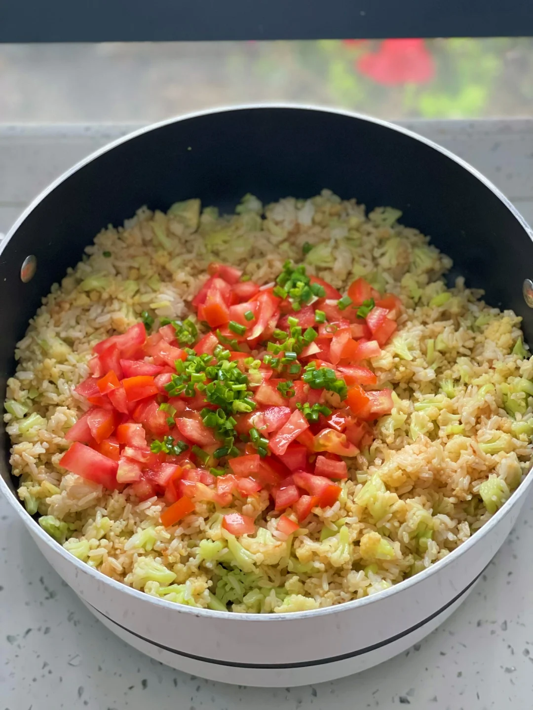 ❤️西红柿最后下变热就行了,这样不会超出过多的水份,炒饭还能保持干爽的状态哦!