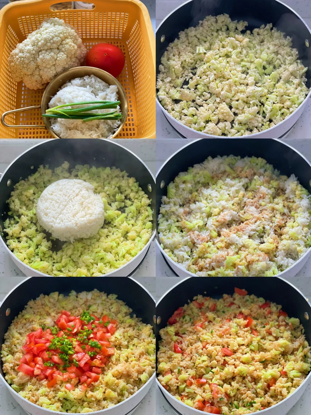 花菜|西红柿|隔夜饭|生抽|盐|葱