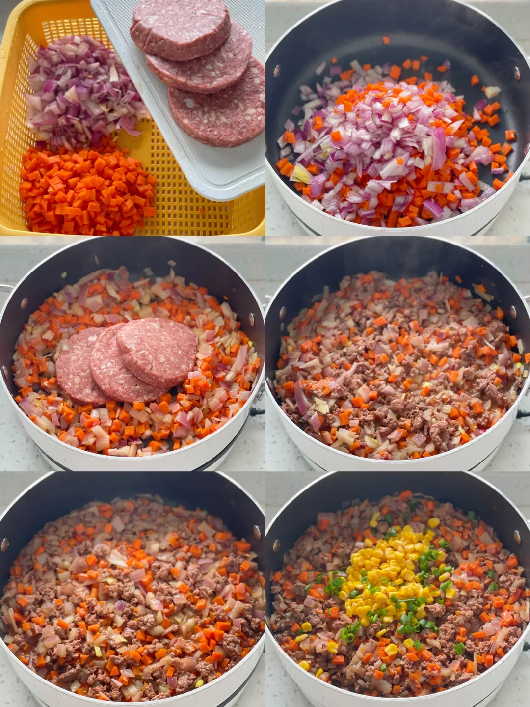 1️⃣胡萝卜、洋葱切丁,玉米我买的是即食玉米粒
