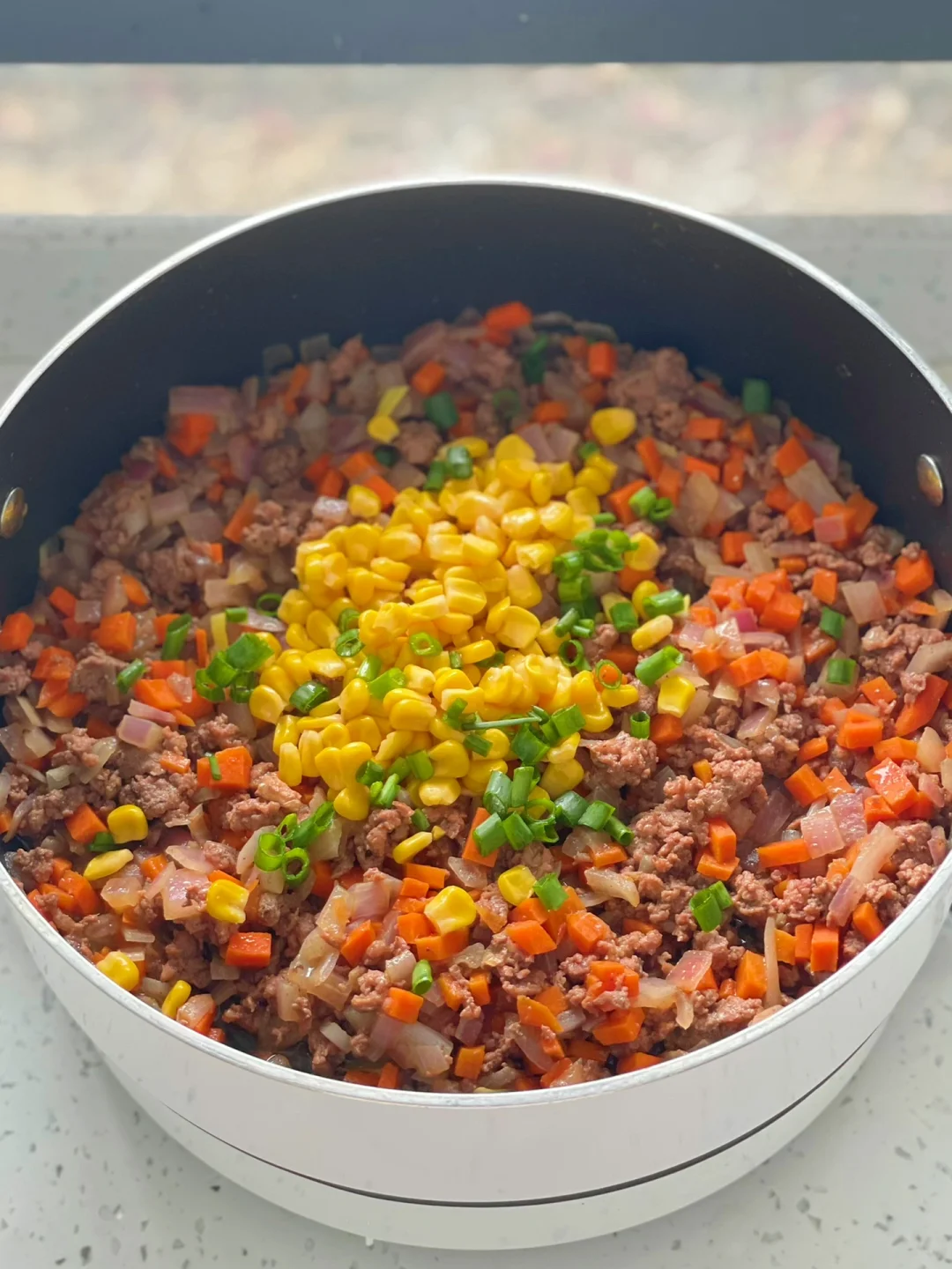 4️⃣最后下入一袋即食玉米,葱花就能出锅啦