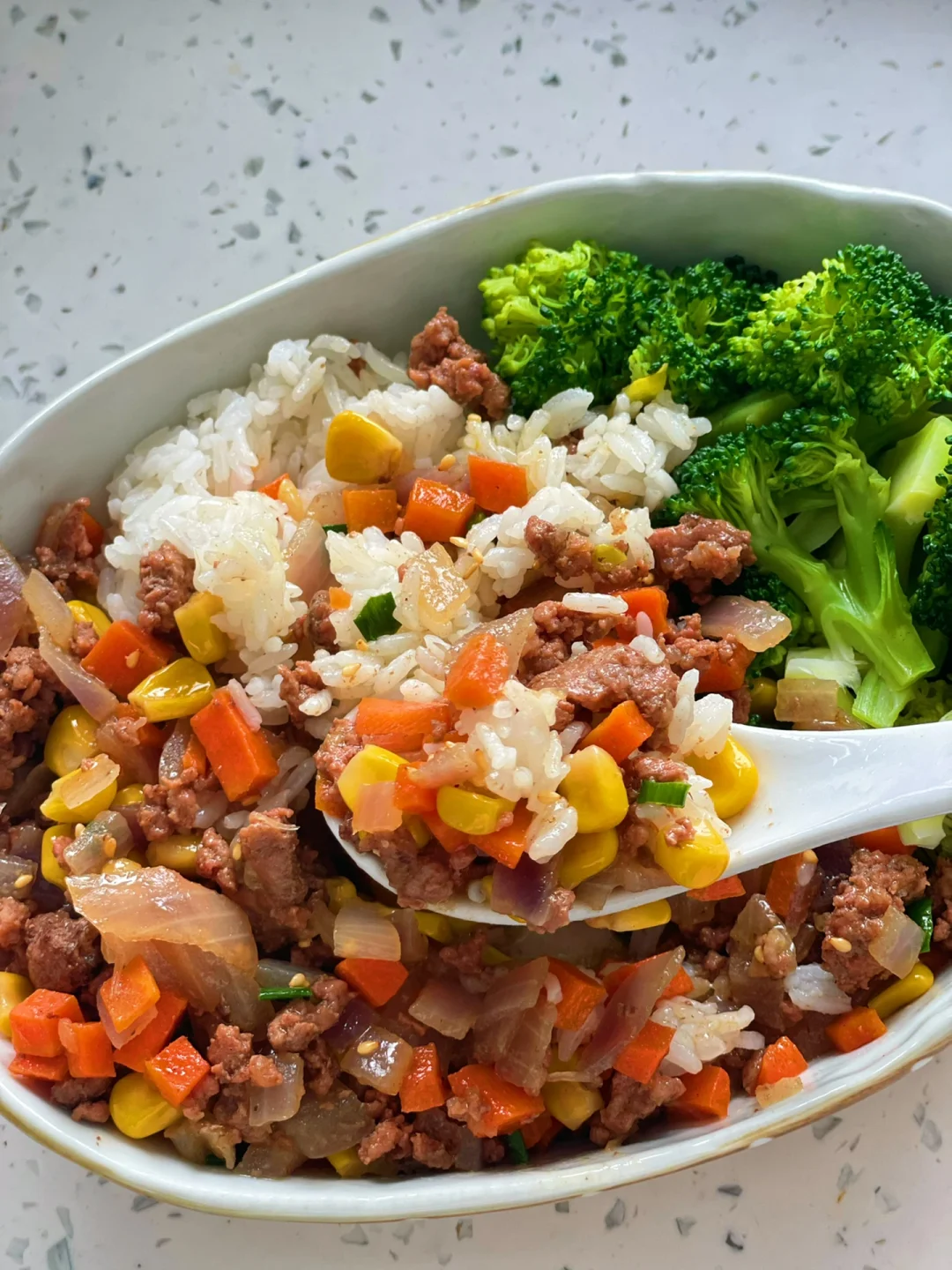 🌟今天的碳水当然要是白米饭啦,免治牛肉拌在饭里真的差点停不下来啊!蔬菜还水煮了西兰花,西兰花的饱腹感特别强,也是我自己平常很爱吃的蔬菜[doge]