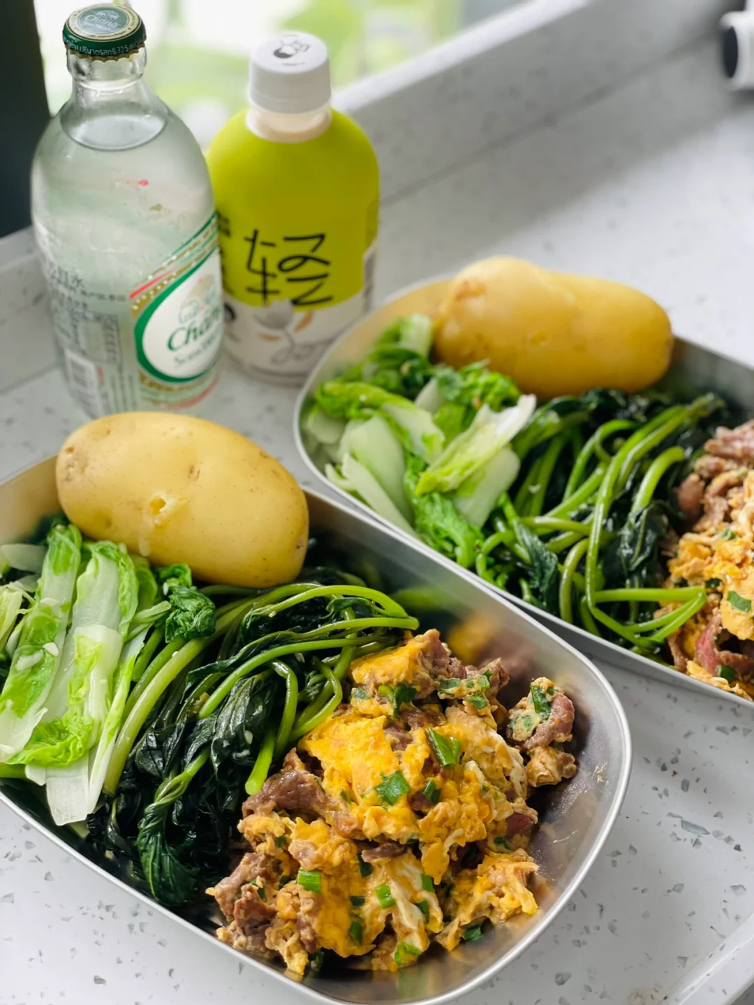 牛肉滑蛋 炒青菜 整土豆 妥妥的一顿健康餐