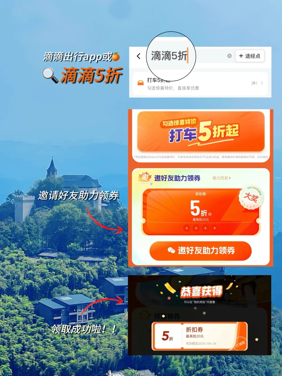 搜🔍【滴滴5折】参与活动,用5折券zui多能省20!跟旅游搭子互相助力也能拿张8折的券,单单都打折特别划算!交通又能省一笔!