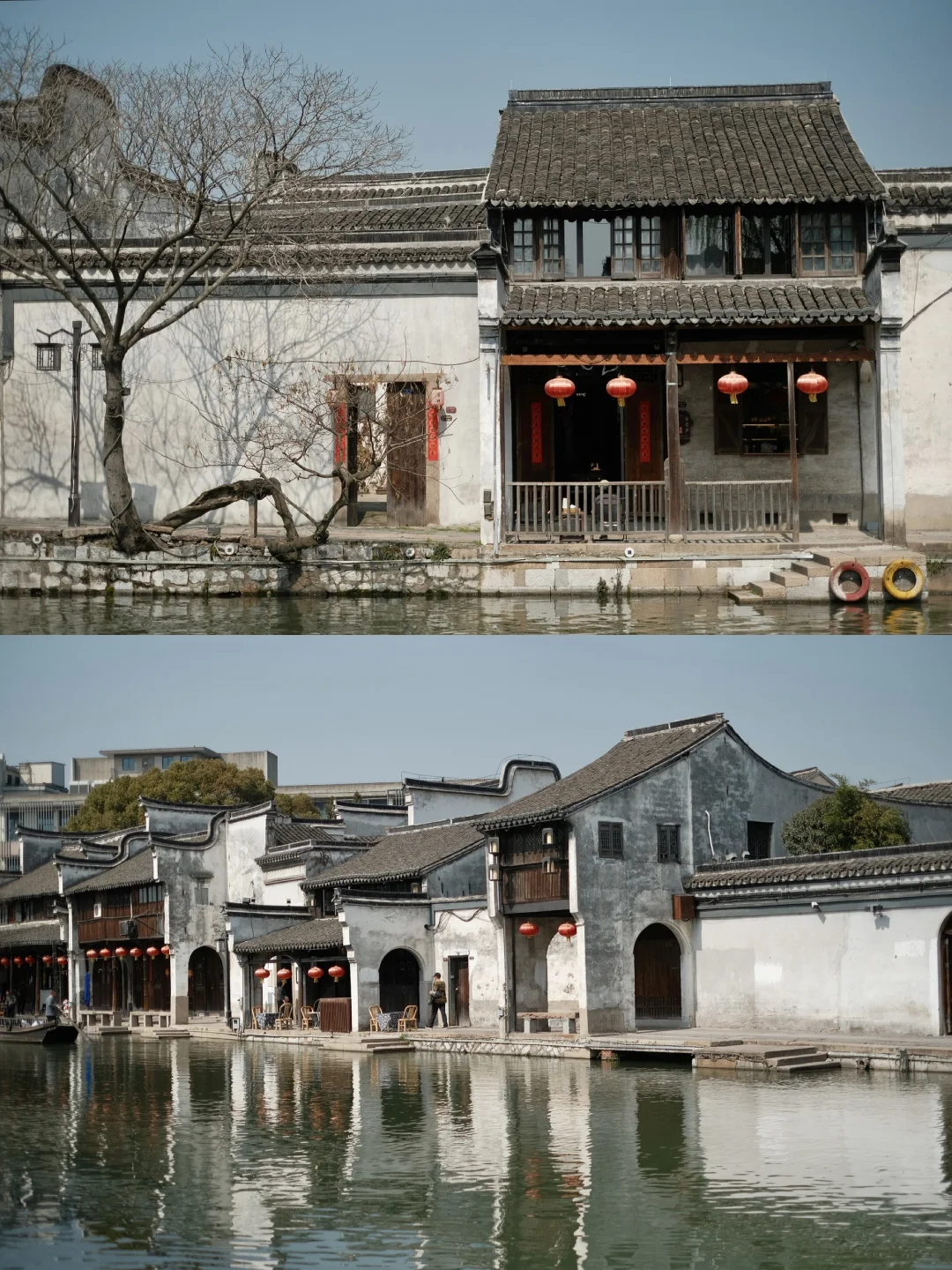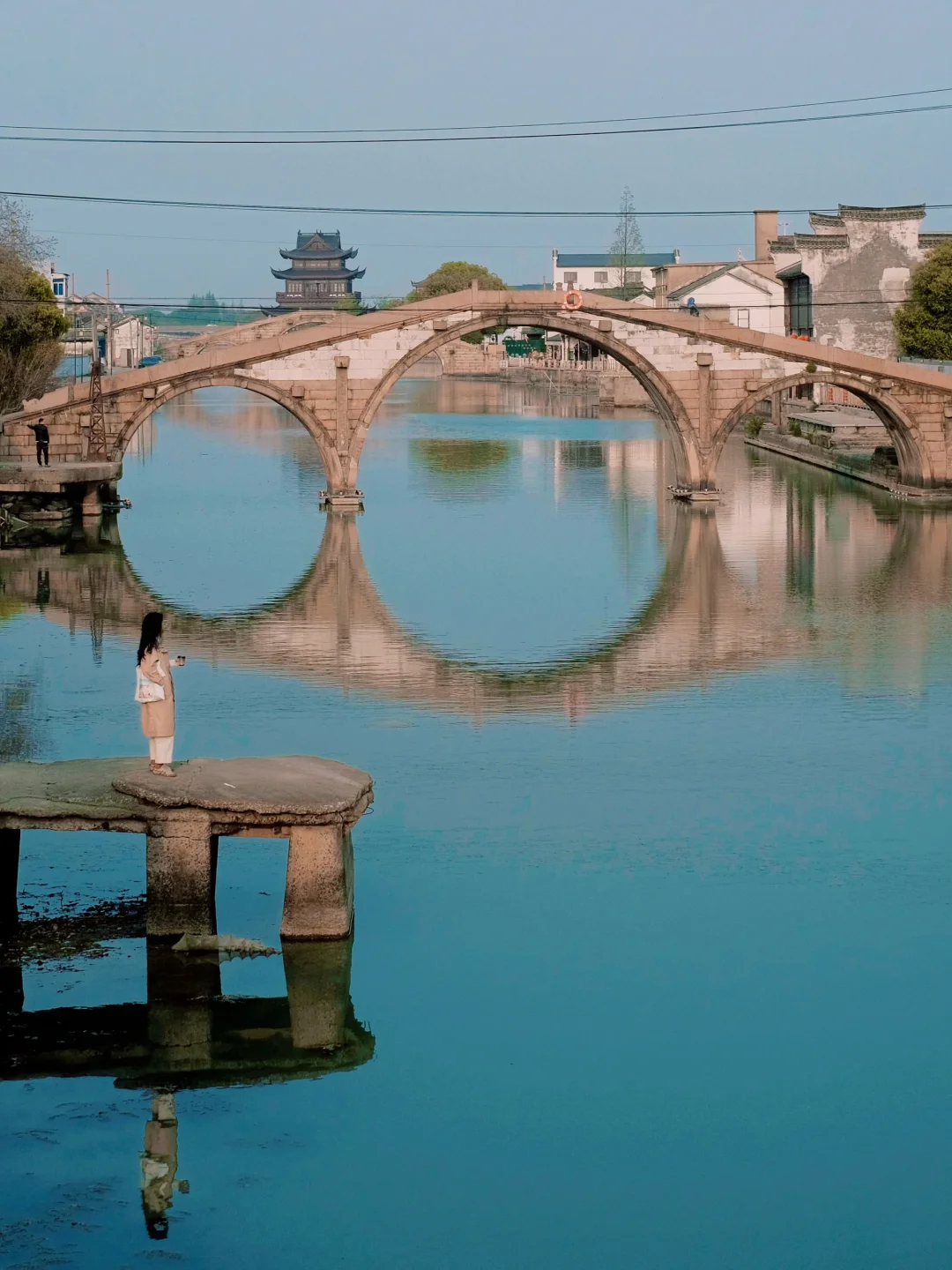 ❶双林古镇。三座明代拱桥并列鼎峙,远眺相叠,遥望文昌楼!沿河walk一下,半天足够。