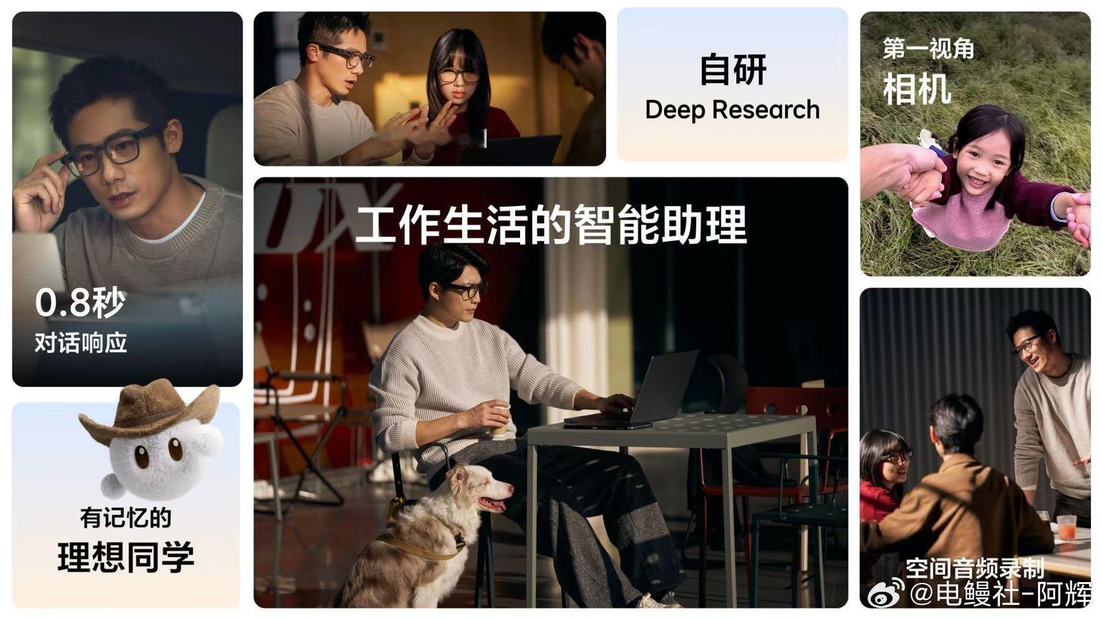 理想AI眼镜发布了,售价1699人民币,看了一圈AI上突破不大,主要和理想品牌汽车的交互有些帮助,这个应该会比斌子的nomi手机好卖一些以下是整理的AI眼镜的一些特色:1. 人车互联:语音控车(空调/后备厢等)、导航无缝切换、数字车钥匙+车辆状态推送,适配HUD不遮挡2. 高清拍摄:索尼1200万像素+105°超广角,0.7秒抓拍,4K拍照/1K视频,EIS防抖+地平线校正3. 智能交互:0.8秒语音响应,MindGPT-4o支持OCR识别、视觉问答,准确率88%4. 舒适适配:36克超轻机身,适配5万+中国人头型,蔡司镜片(感光变色款),UV400防护5. 续航音频:18小时典型续航+无线充电,理想自研头枕音响+110db双磁路扬声器