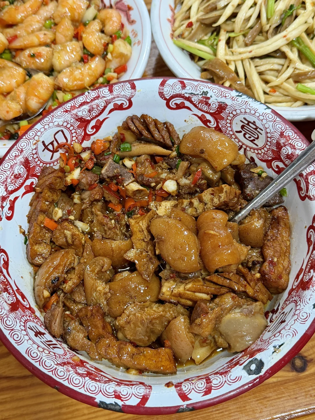 真的名不虚传!听说好多芒果台明星也来吃过!鱼籽鱼泡一定要点!越煮越入味香迷糊了!还有红糖糍粑,碳水星人会爱惨! 不是本地人都找不到的老店!没啥环境,口味却比那些预制菜强太多了🥹🥹口味牛肉、招牌坛子肉、基围虾、兰花干猪脚…都嘎嘎下饭~一定是我会带朋友来n刷的苍蝇馆,叫:炼哥家菜馆