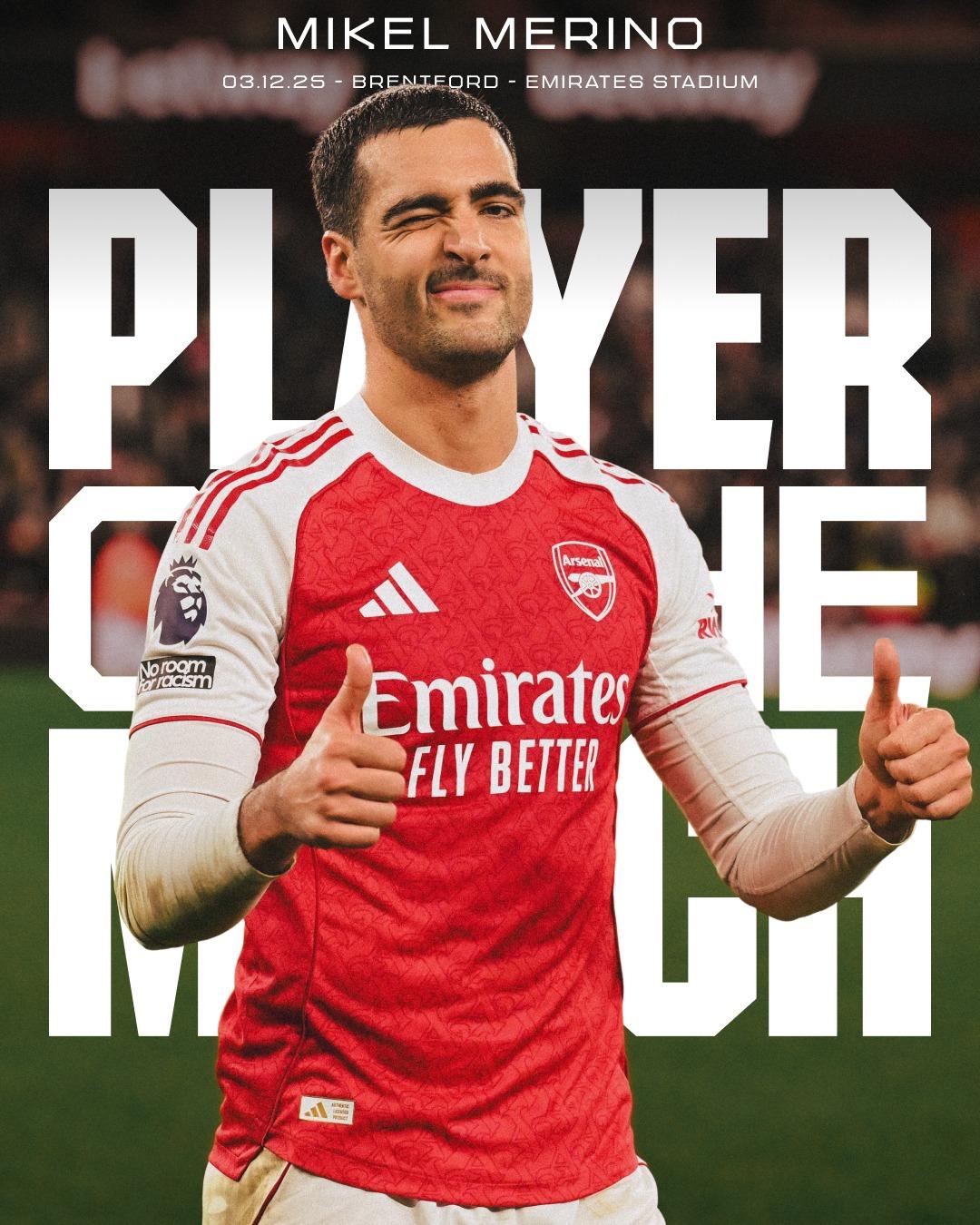 赛后,阿森纳官方宣布梅里诺当选本场比赛队内最佳球员。