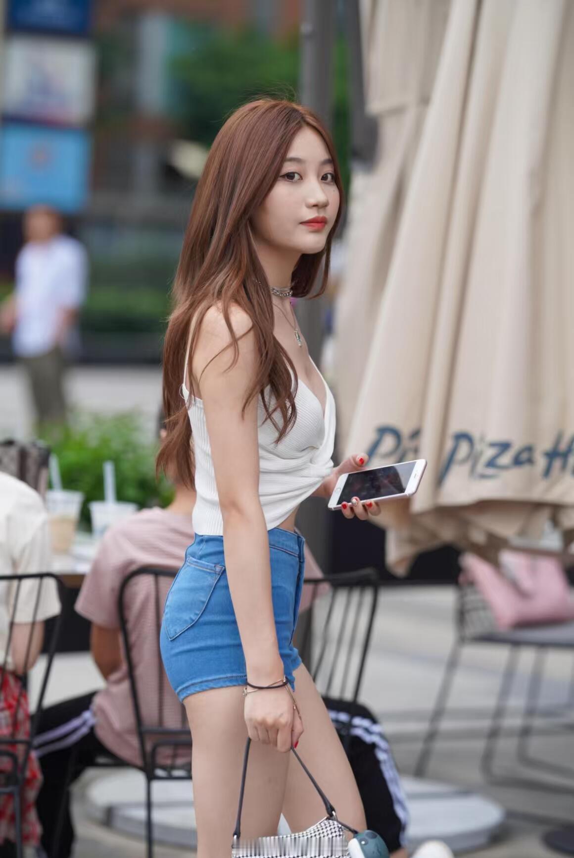 蓝色牛仔短裤女孩的逛街日常,简单又让人心动。牛仔短裤