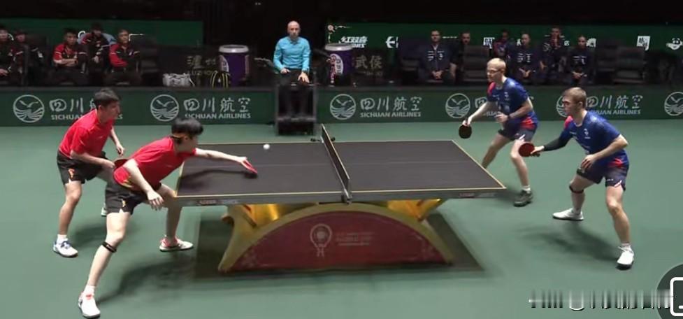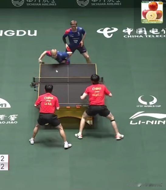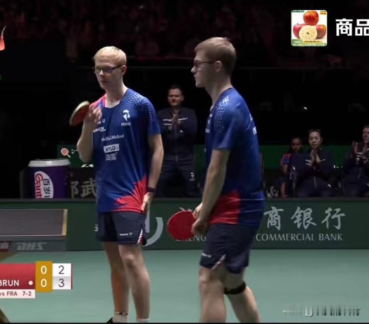 王楚钦林诗栋1:0勒布伦兄弟 中国队8:2战胜法国队 第一局,3:3,大头得分4:3,小布得分4:4,林诗栋正手进攻滚网球得分5:4,小石头得分6:4,勒布伦兄弟连续得分6:6,小布得分6:7,中国队得分7:7,大头球下网7:8,小布得分7:9,大布球出台8:9,林诗栋正手进攻得分9:9,大头接发球反手拧得分10:9,王楚钦摆短得分11:9。林诗栋王楚钦赢下第一局。 王楚钦林诗栋打的很好 中国队8:2法国队