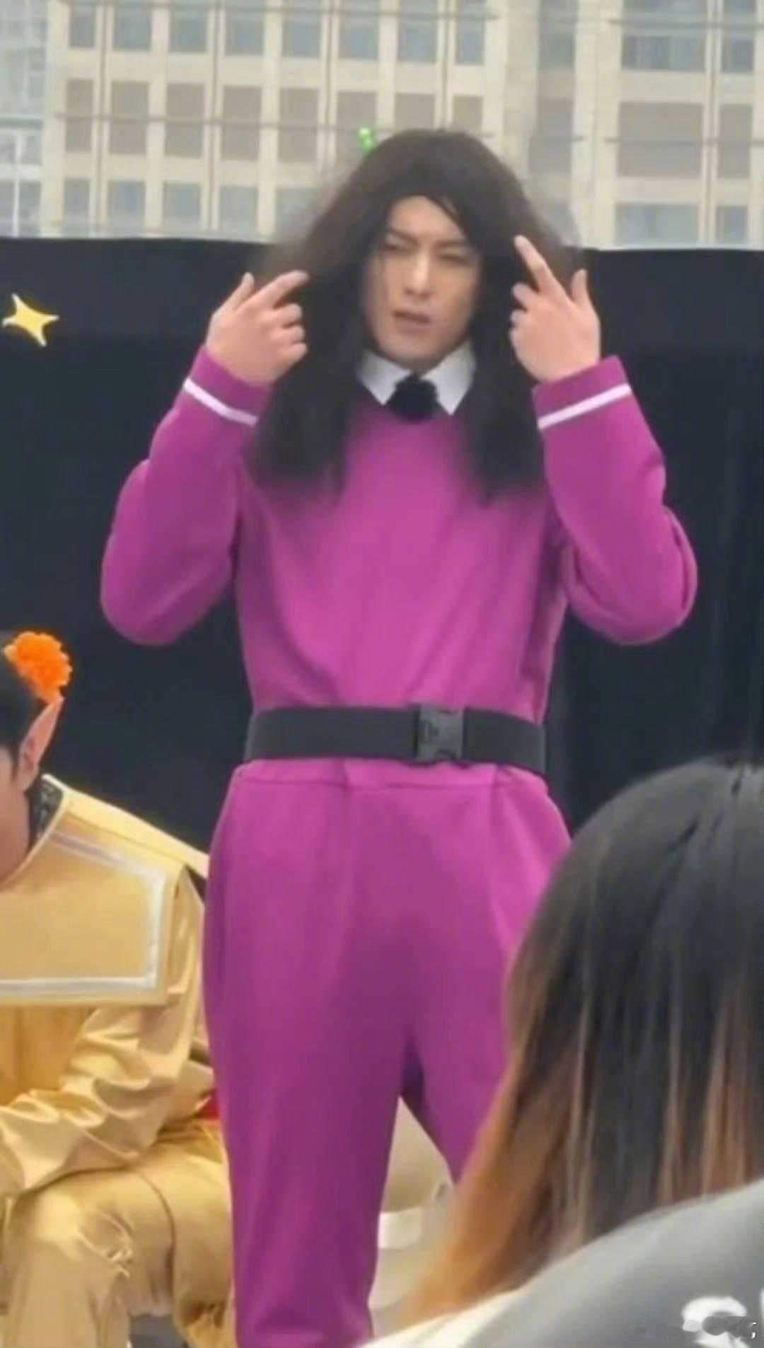 花了五分钟才找到王鹤棣在哪 爱奇艺新综《宇宙闪烁请注意》路透造型又上新了,今日重庆录制中“宇宙爆闪团”全员抽象变装,穿上紫色连体衣、戴爆炸头假发把脸都挡住了,想认出还得靠排除法,这造型也是豁出去了,期待节目上线后的爆笑画面!