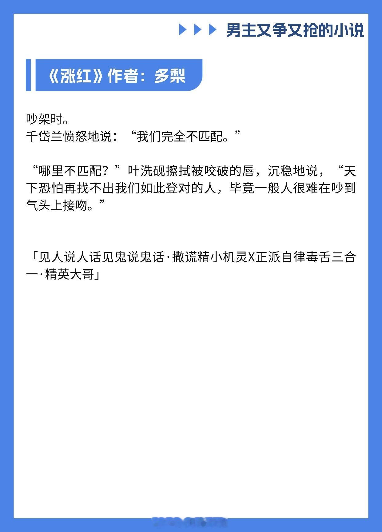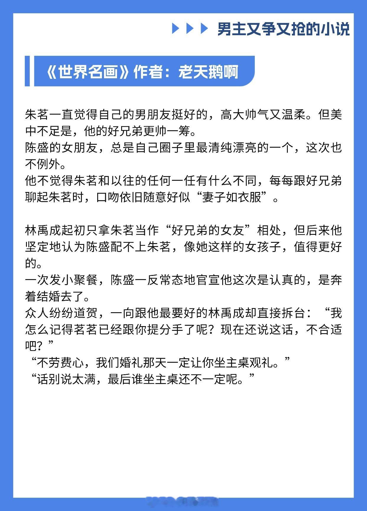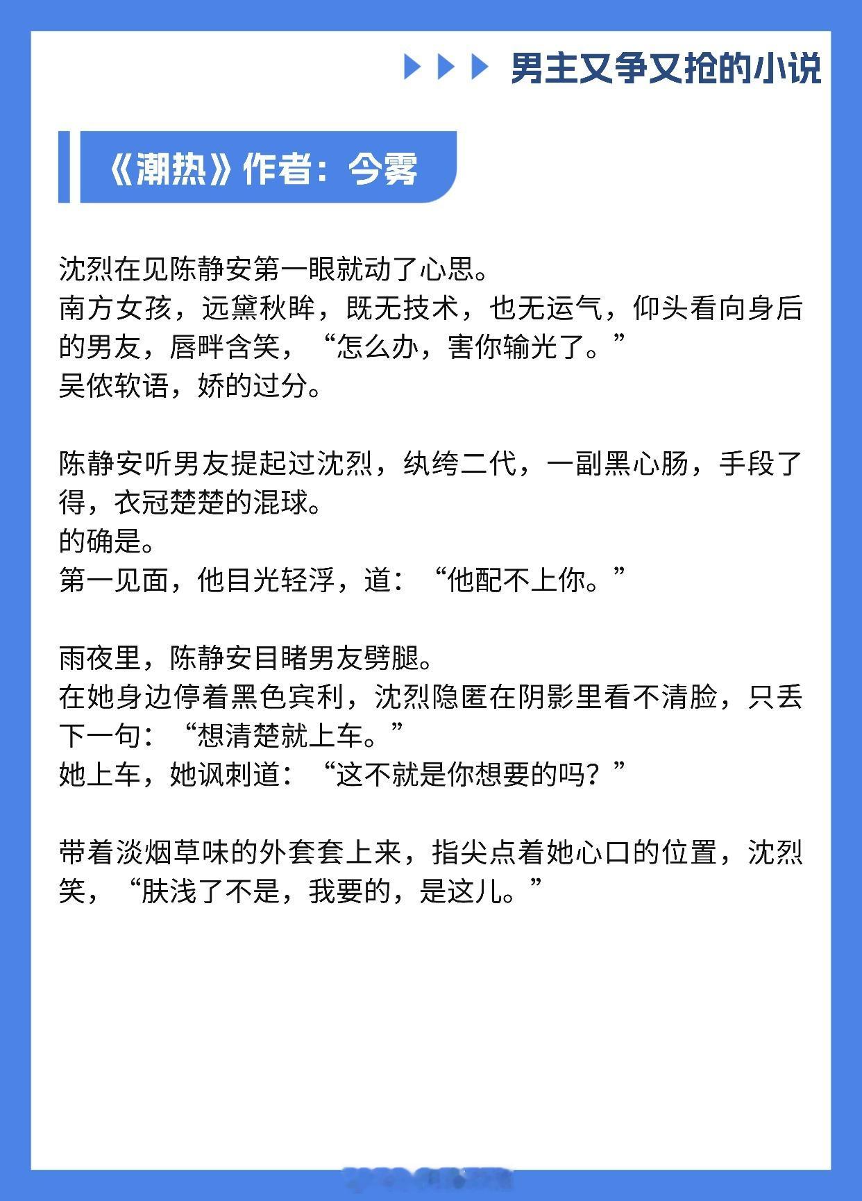 【男主又争又抢的小说】我爱你,即使这会毁了我《香波之外》作者: 核萄《涨红》作者:多梨《不入爱河》作者:蒋牧童《心痒》作者:船宝《绿墙角》作者:叶惜语《这婚离不了》作者:无影有踪《潮热》作者:今雾《世界名画》作者:老天鹅啊《醒春集》作者:澄昔推文推文言情小说推荐