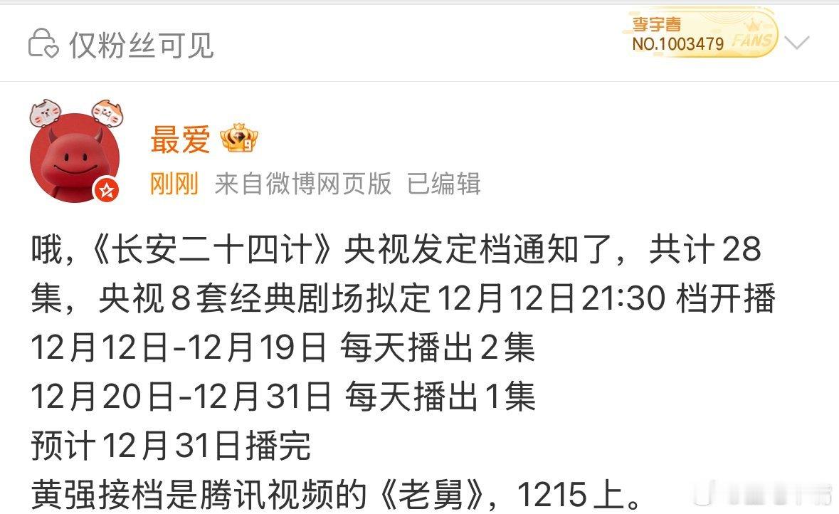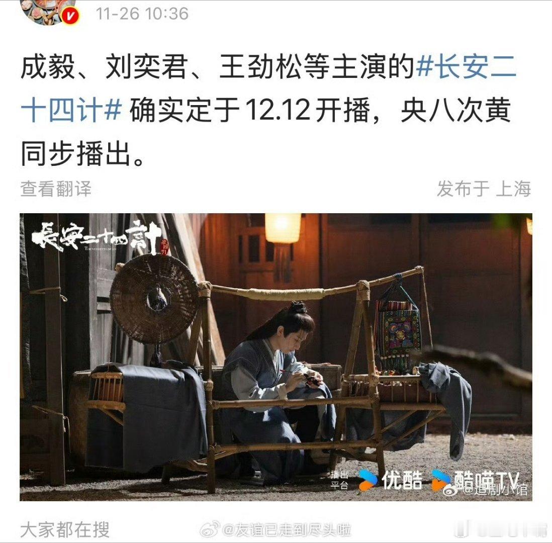 长安二十四计定档央八21:30档播出!成毅《长安二十四计》播出方式!到时候算到黄金档哦原因只有8集是十点档12日至19日,每晚两集连播 (8天共16集)20日至31日,每晚一集 收官 (12天共12集)28集收官!