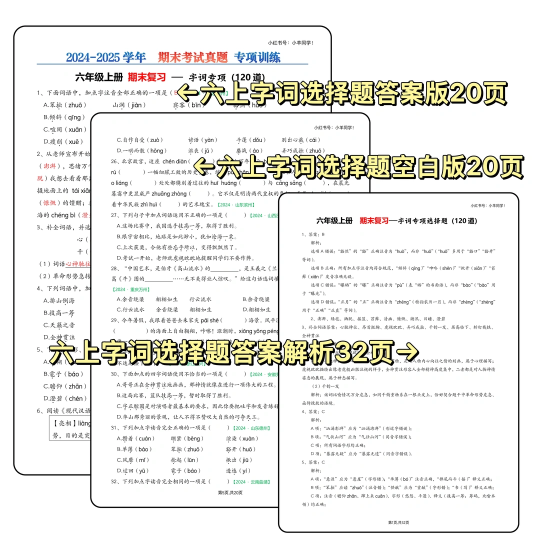 🎈这套习题参考了近百个名校名区的2024-2025学年期末真题卷。很多地区都是相似题型,我选取了其中重中之重的,超高频考点的试题进行的总结。