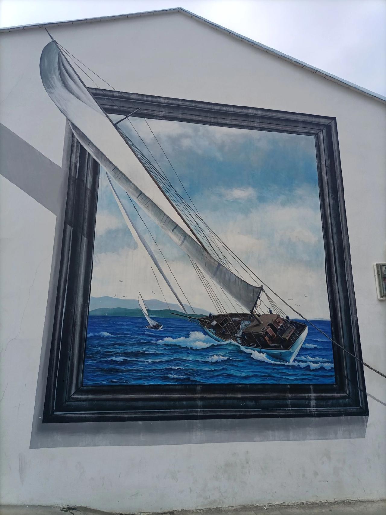 人大抵有时很幸运的,当首次来到广东汕尾,近距离接触原始小渔村时,便是如此地愉悦。走到小岛村渡口,原以为要渡船的,谁知有一座便桥直通小岛村,到省了不少买船票渡船的麻烦。此处的海景也是极优美的,远处的海岛海湾,停泊的渔船也是古朴真实的,电影小说中的场景也在此充满遐思(图1-5)。 大抵从这里可进入原始的小岛村(图6),我也是知道的;总想看看原始的渔民生活,从渔村小巷开始就一一展现了,前方的渔民老屋故居,右边的的渔民出海小港口(图7-8), 刚捕上来的乌贼鱼还晾晒在竹杆上;感觉倦了就往回走,不想小小的渔村,竟还有3D墙画栩栩如生的,船帆伸出了画框,立体感超强的(图9)。 渔村 原生态乡村生活