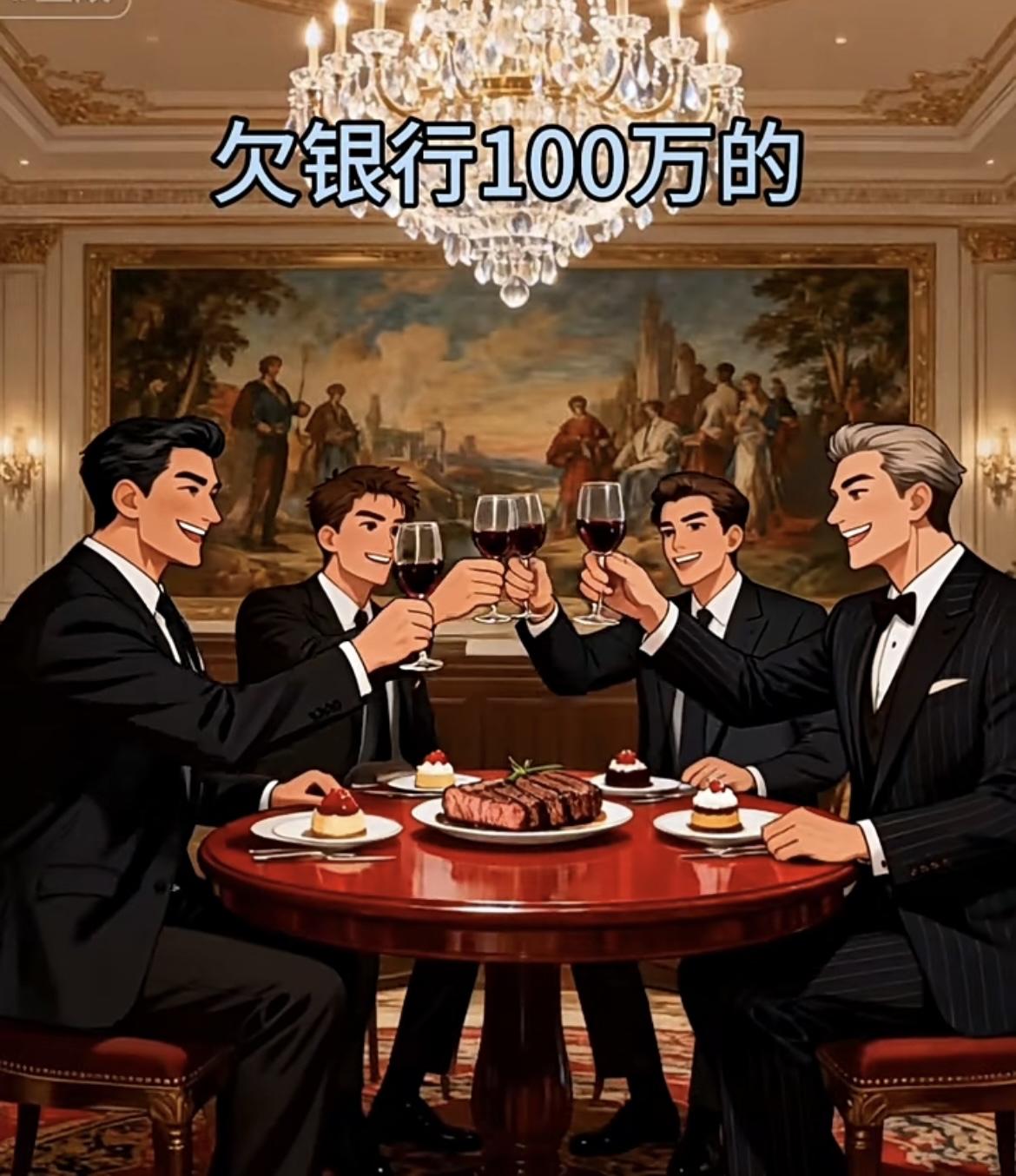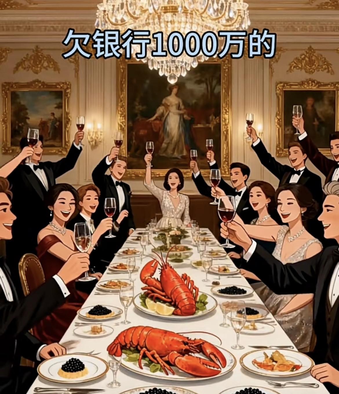 家人们发现没?跟银行打交道的“贫富逻辑”,主打一个反向操作: • 存银行的:破屋漏墙配咸菜,日子主打“稳赔不赚”的朴素; • 欠10万的:温馨小家三娃乐,生活主打“能扛则扛”的踏实; • 欠100万的:西装碰杯商务局,饭局主打“资源互换”的体面; • 欠1000万的:吊灯名画龙虾宴,排面主打“银行是我友”的嚣张; • 欠1亿的:游艇落日鱼子酱,日常主打“银行追着唠嗑”的潇洒。 合着这关系里,咱存钱的是“普通客户”,人欠钱的才是银行的“顶级VIP”啊!